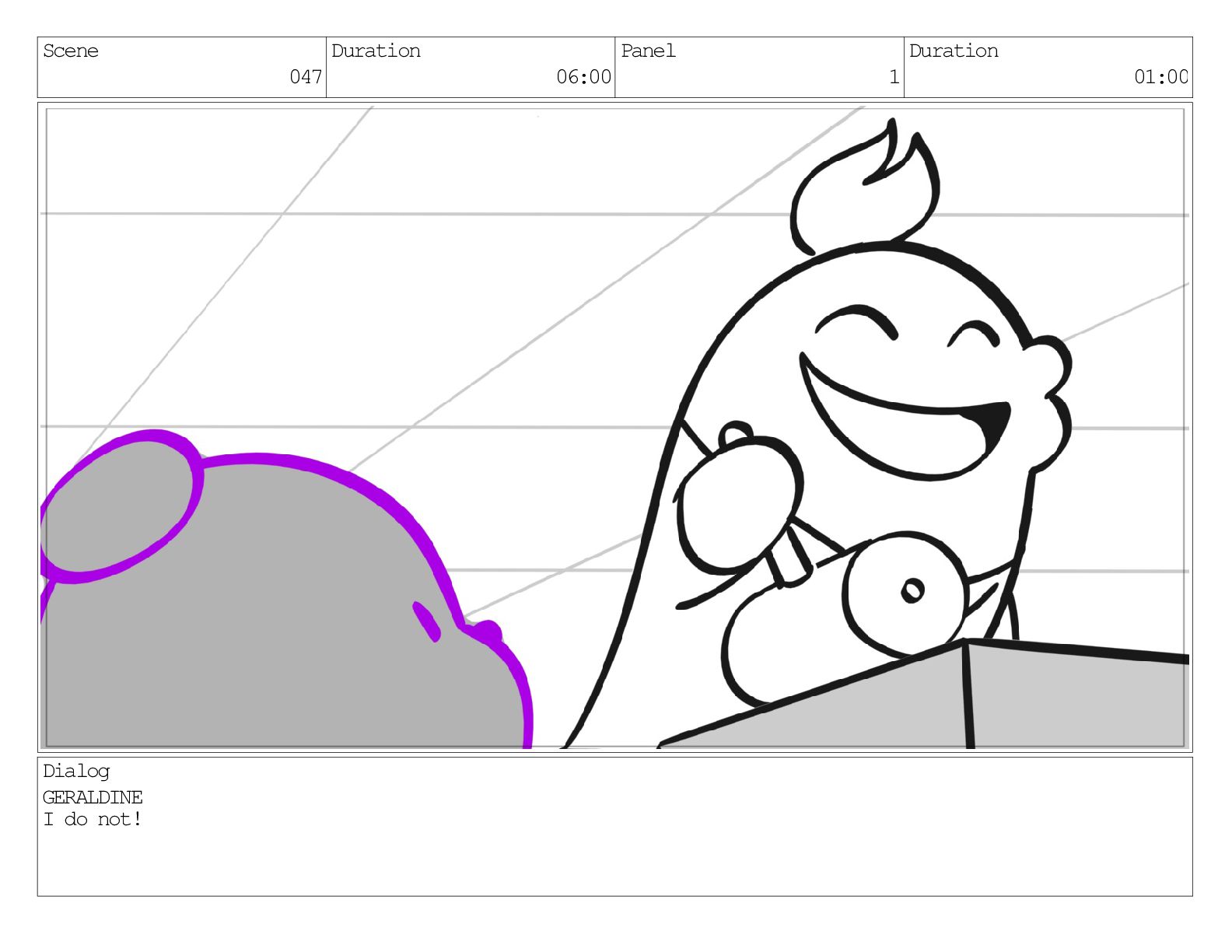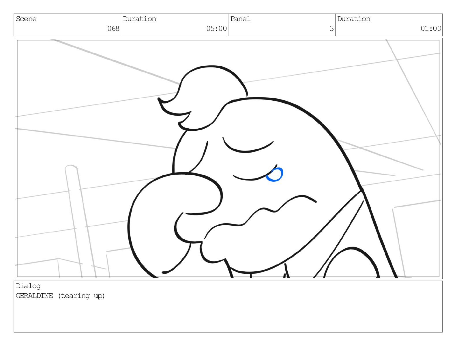 Scene 099 Duration 04:00 Panel 3 Duration 01:00 Dialog GERALDINE