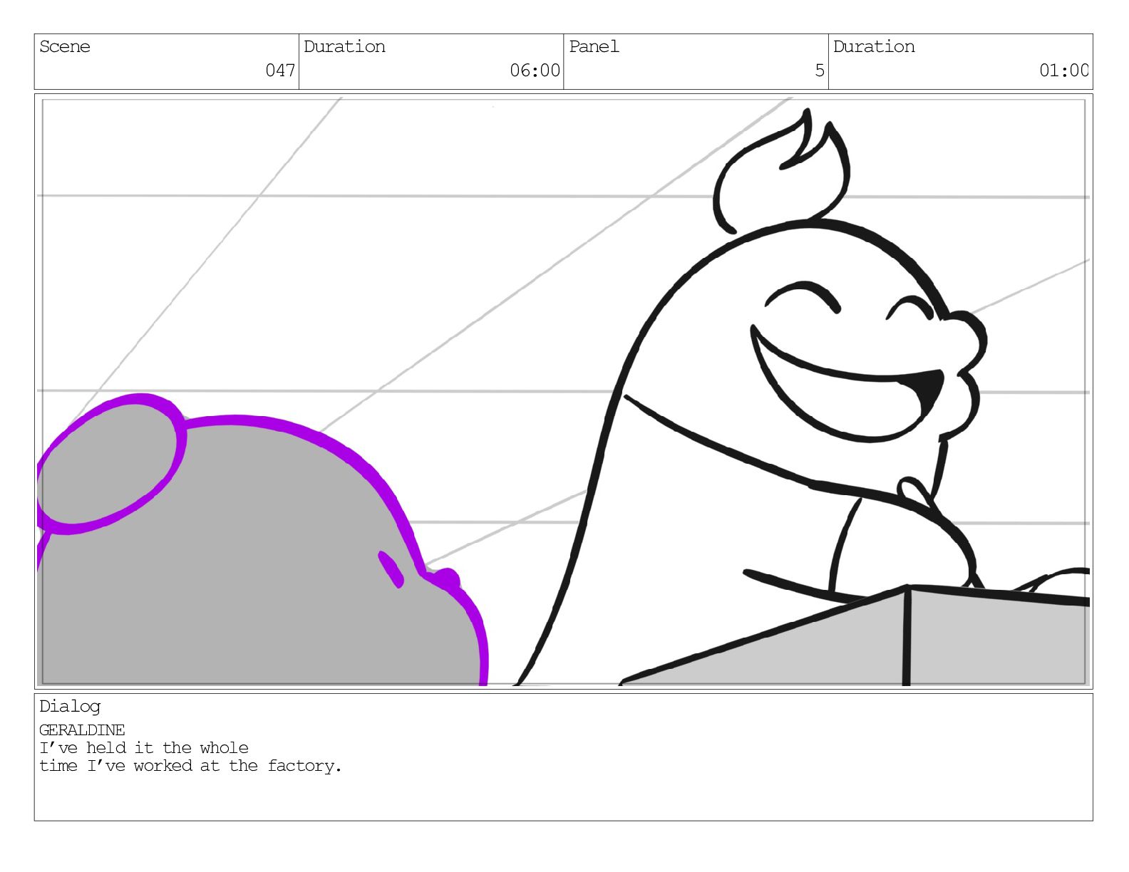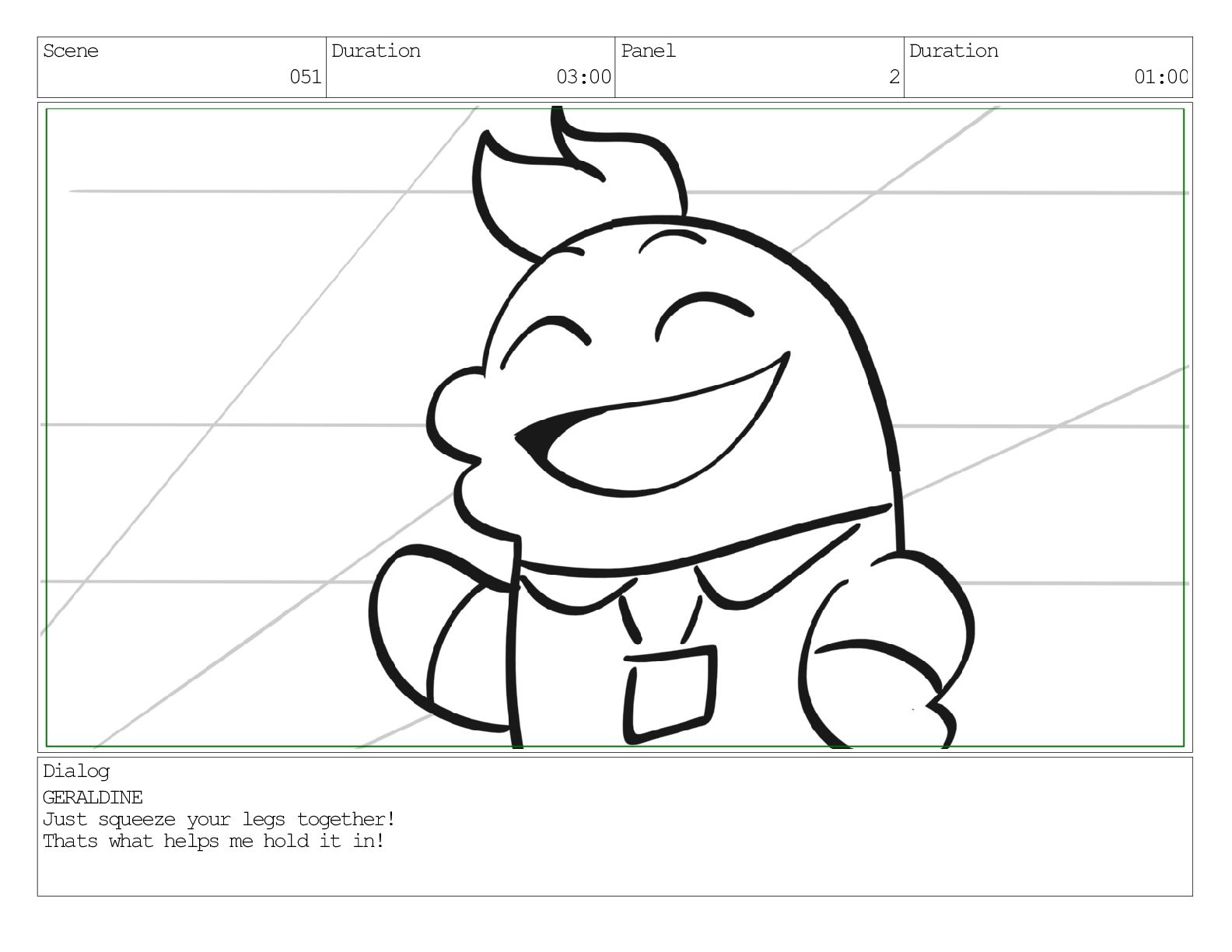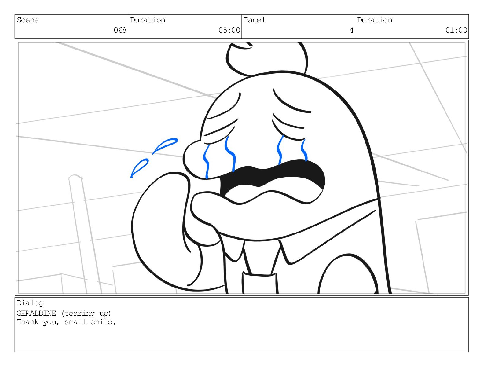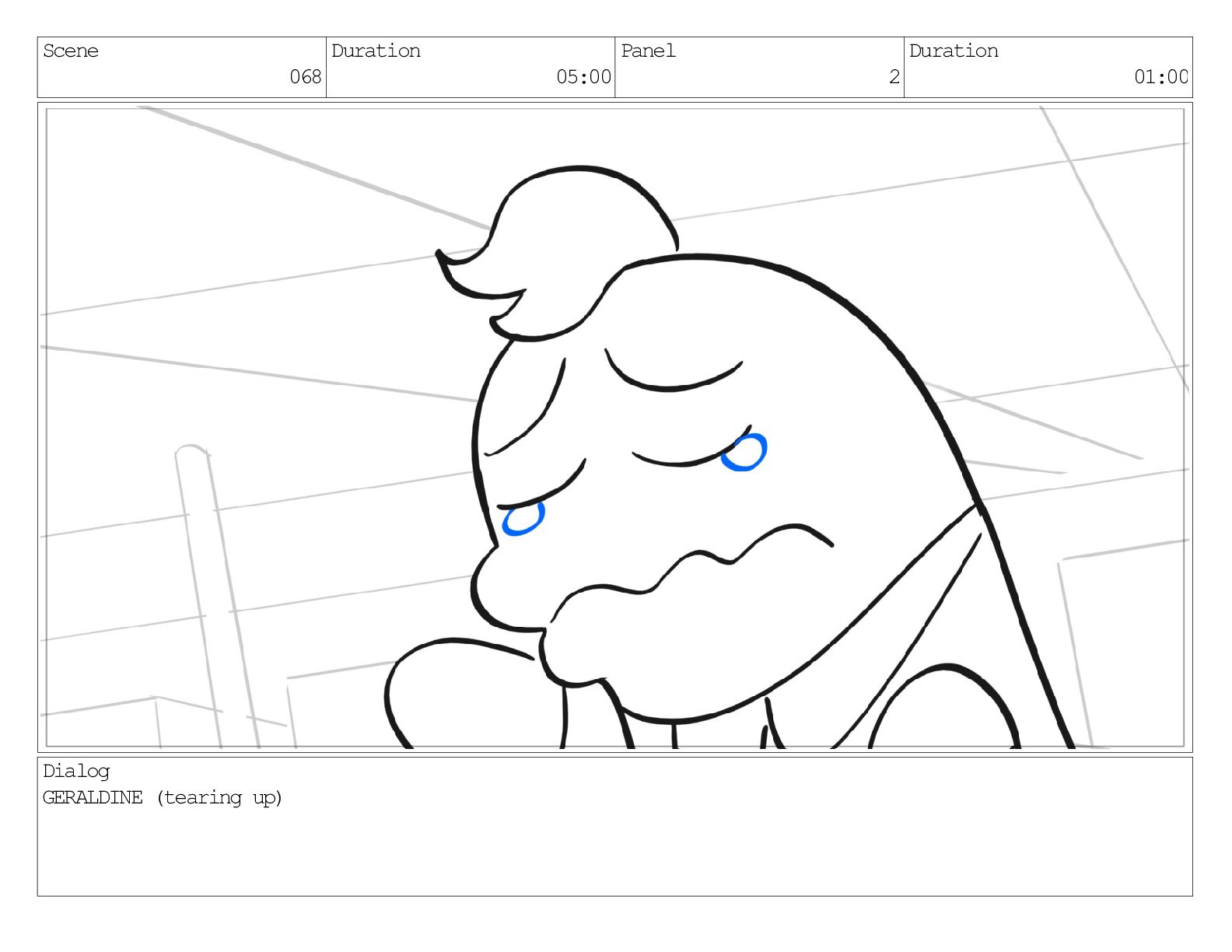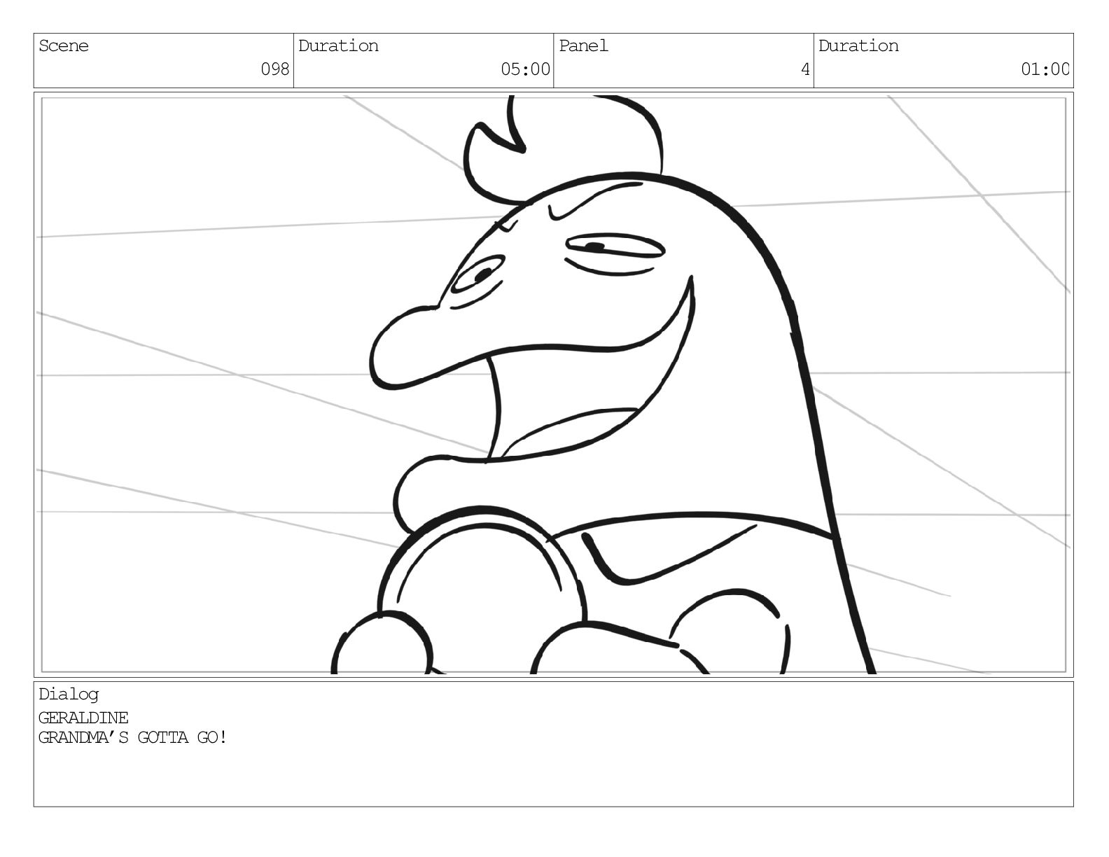 Scene 098 Duration 05:00 Panel 4 Duration 01:00 Dialog GERALDINE