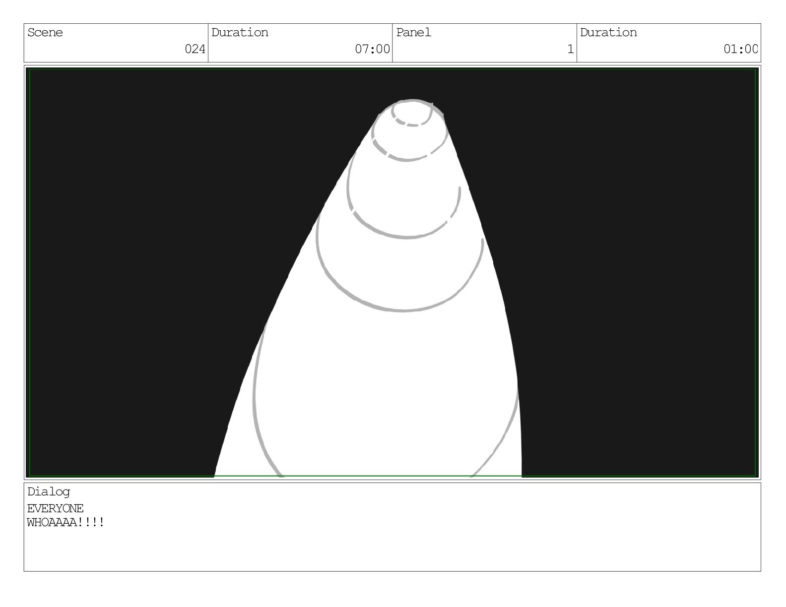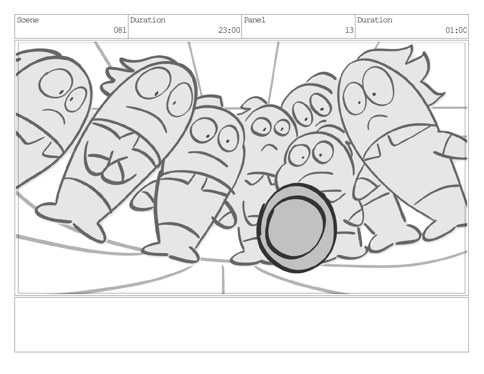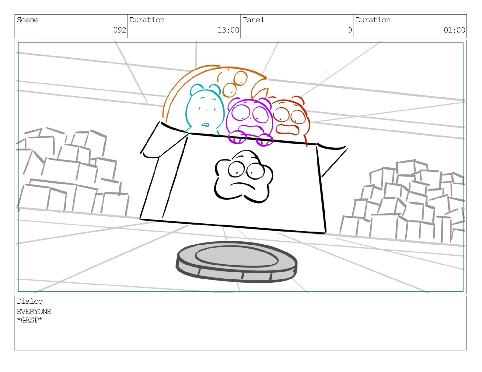 Scene 092 Duration 13:00 Panel 9 Duration 01:00 Dialog EVERYONE