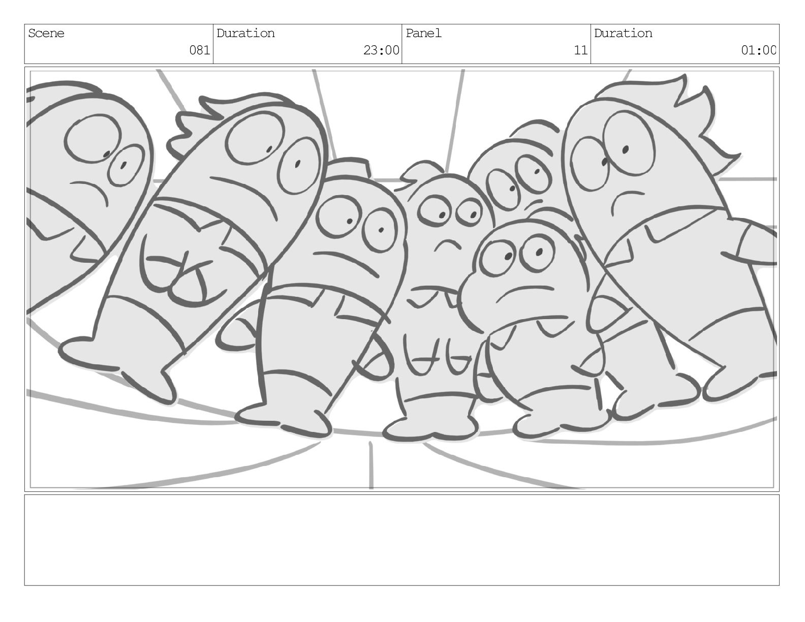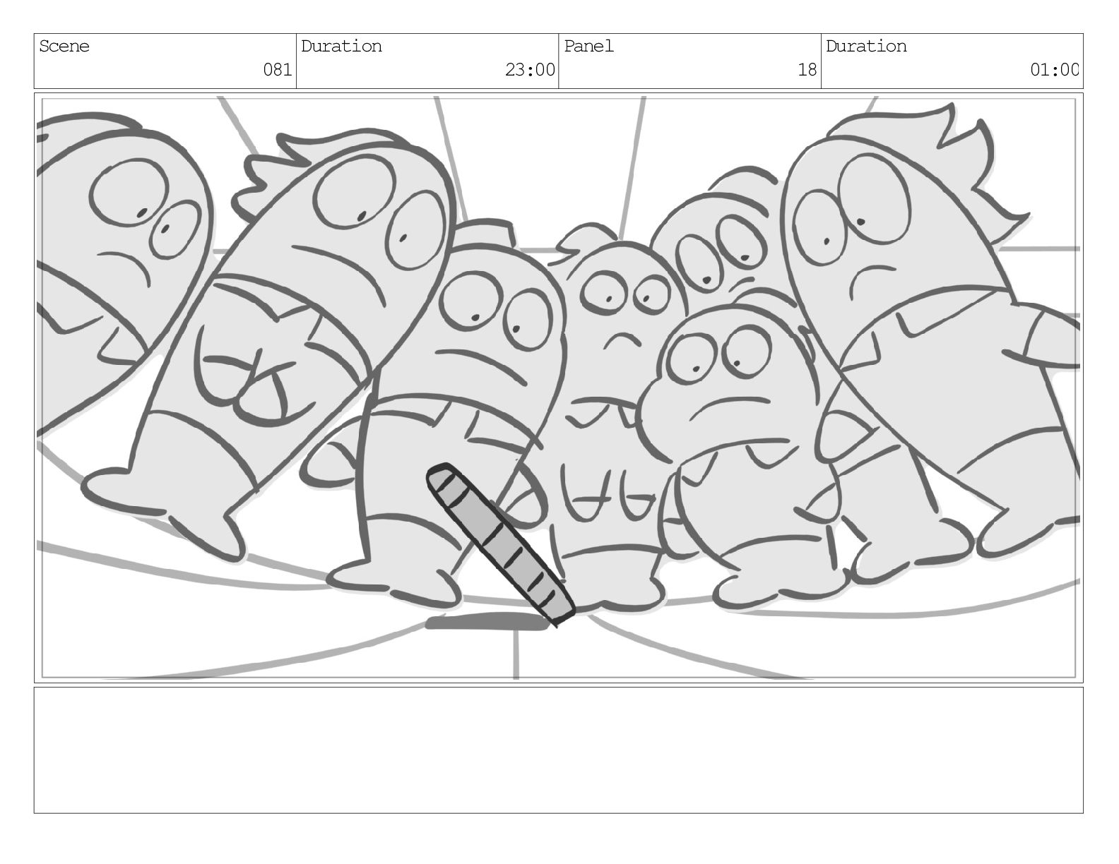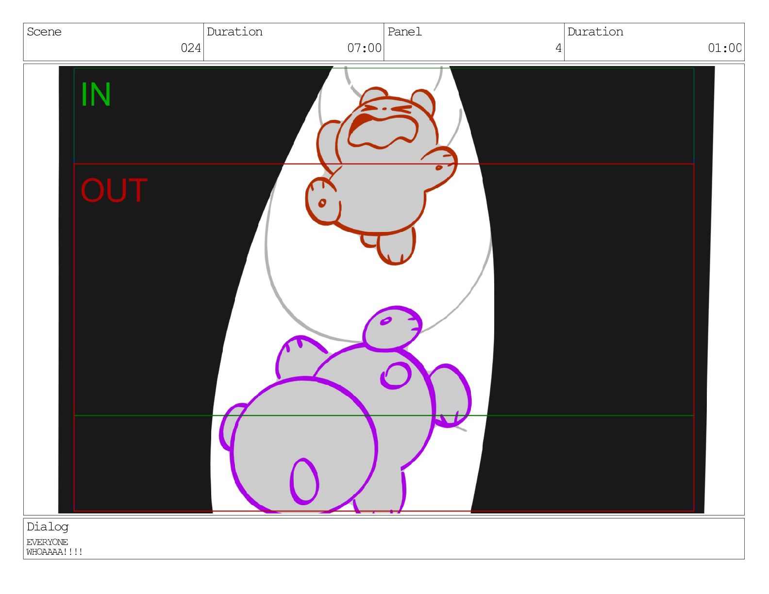 Scene 092 Duration 13:00 Panel 9 Duration 01:00 Dialog EVERYONE