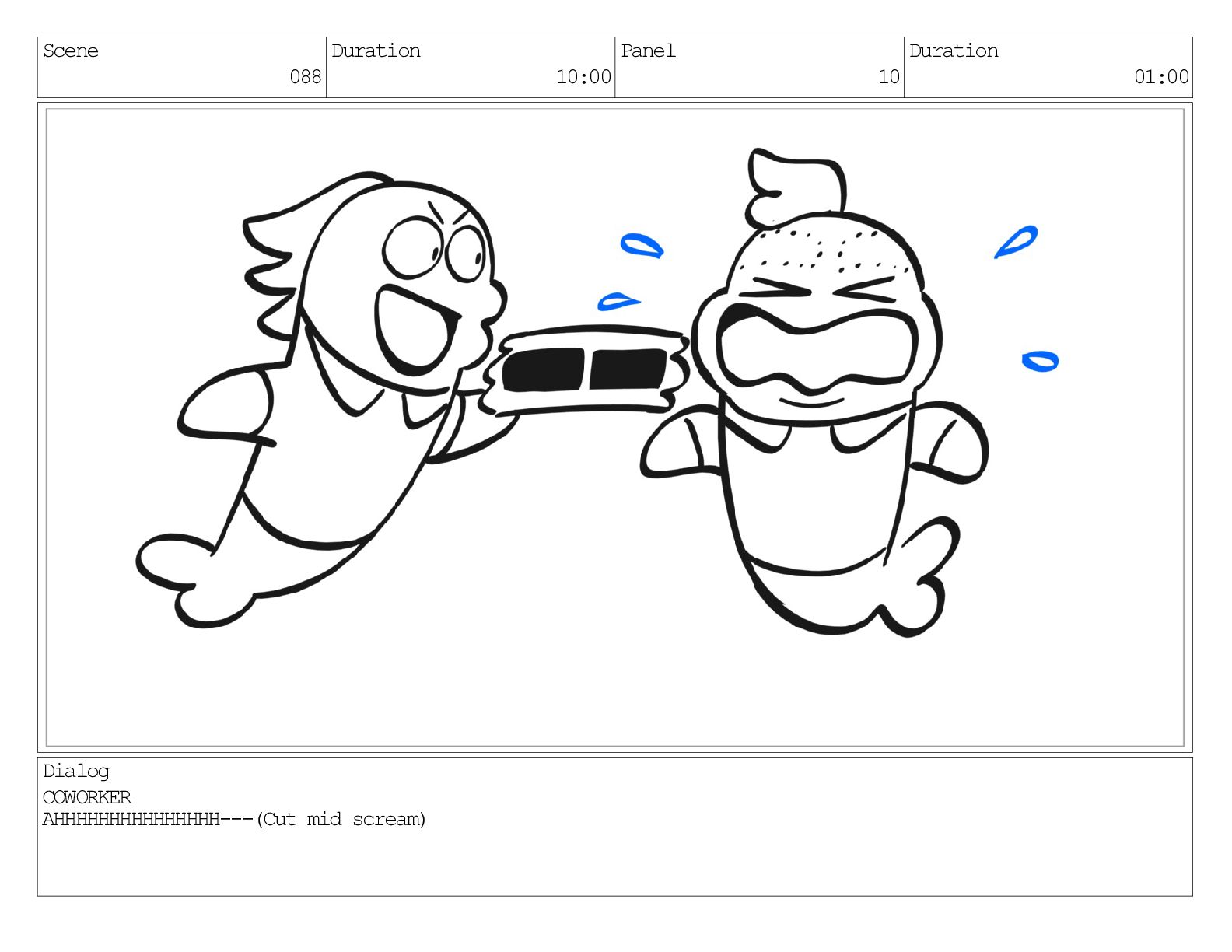 Scene 088 Duration 10:00 Panel 10 Duration 01:00 Dialog COWORKER