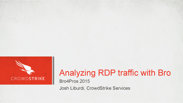 development is complete, but there is more to do – Public test traces are also available: testing/btest/Traces/rdp – Feedback and contributions are appreciated • Future work – Pass data to SSL and x509 analyzers when necessary – Migrate scriptland event cleanup to core • Hostname and product ID are currently formatted in scriptland – Test on higher bandwidth networks (volunteers?) 2015 CrowdStrike, Inc. All rights reserved. 17