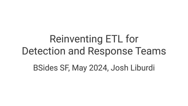Security Engineer at Brex2 • Previously: Splunk, Target, CrowdStrike, GE • Working on security data solutions3 for several years 3 Most closed source, some open source. See my talk from BSides SF 2019 for an example. 2 Warning: Opinions are mine and not representative of my employer or colleagues. 1 Detecting, hunting, responding, consulting, engineering, architecting, and much more that I'd rather forget about.