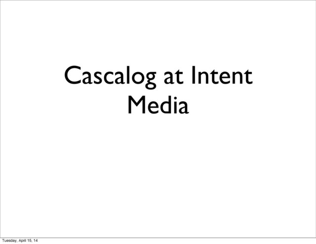 Cascalog at Intent Media Tuesday, April 15, 14