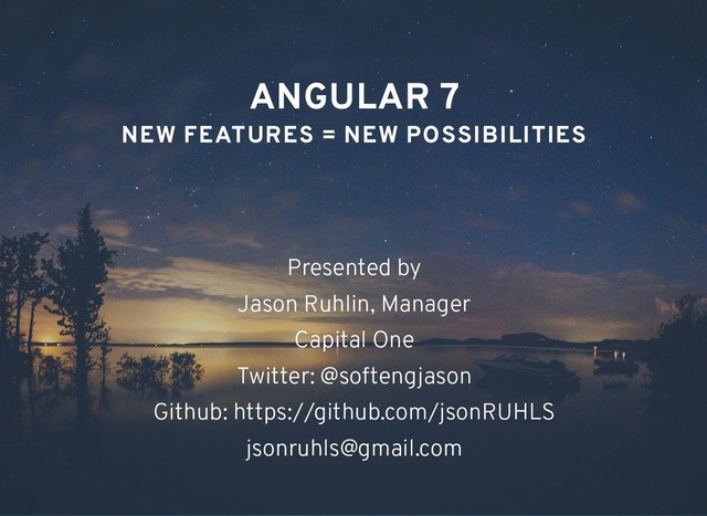 FEATURES = NEW POSSIBILITIES Presented by Jason Ruhlin, Manager Capital One Twitter: @softengjason Github: https://github.com/jsonRUHLS [email protected]