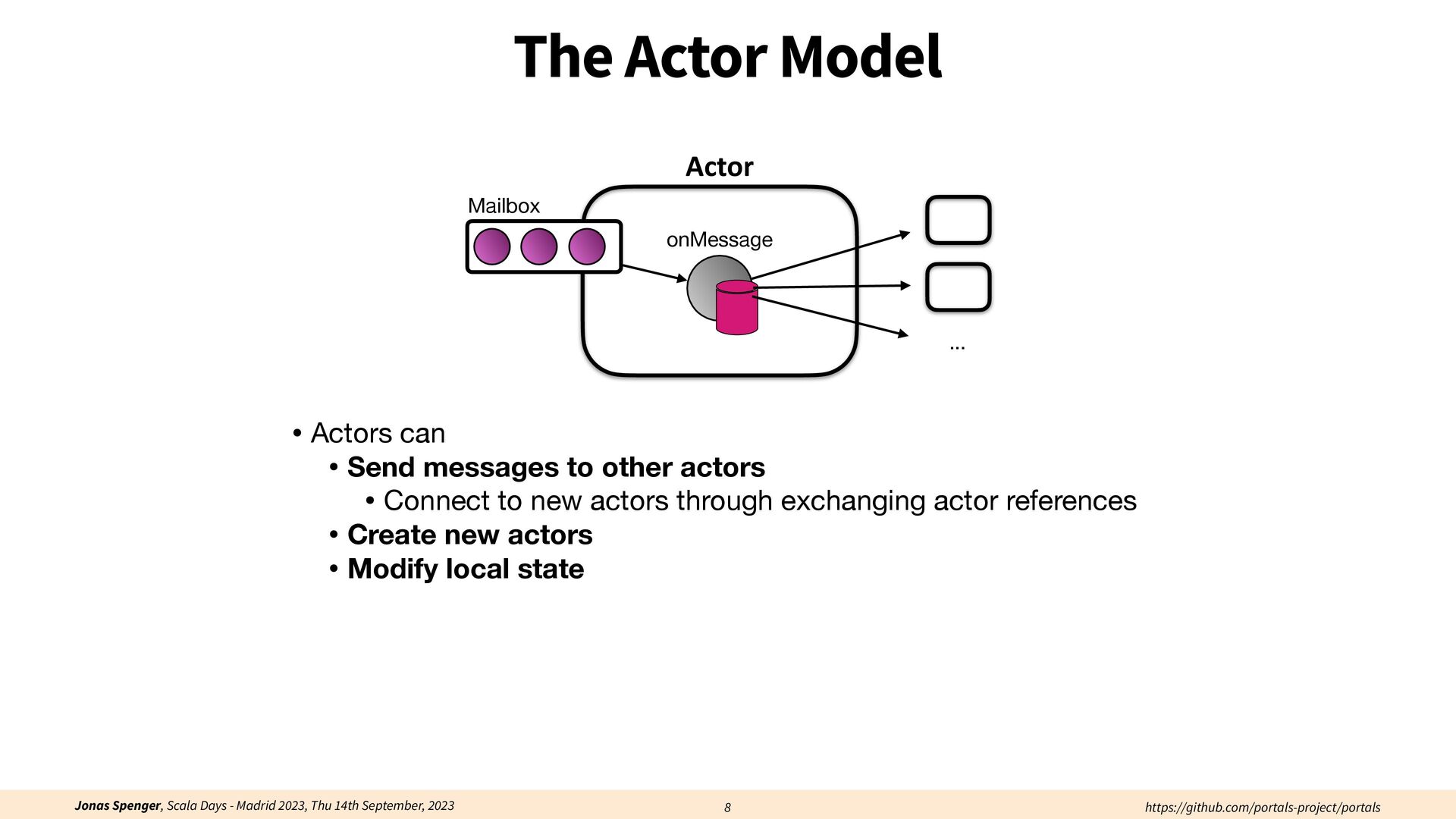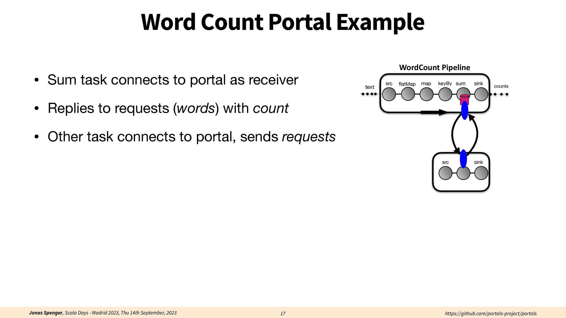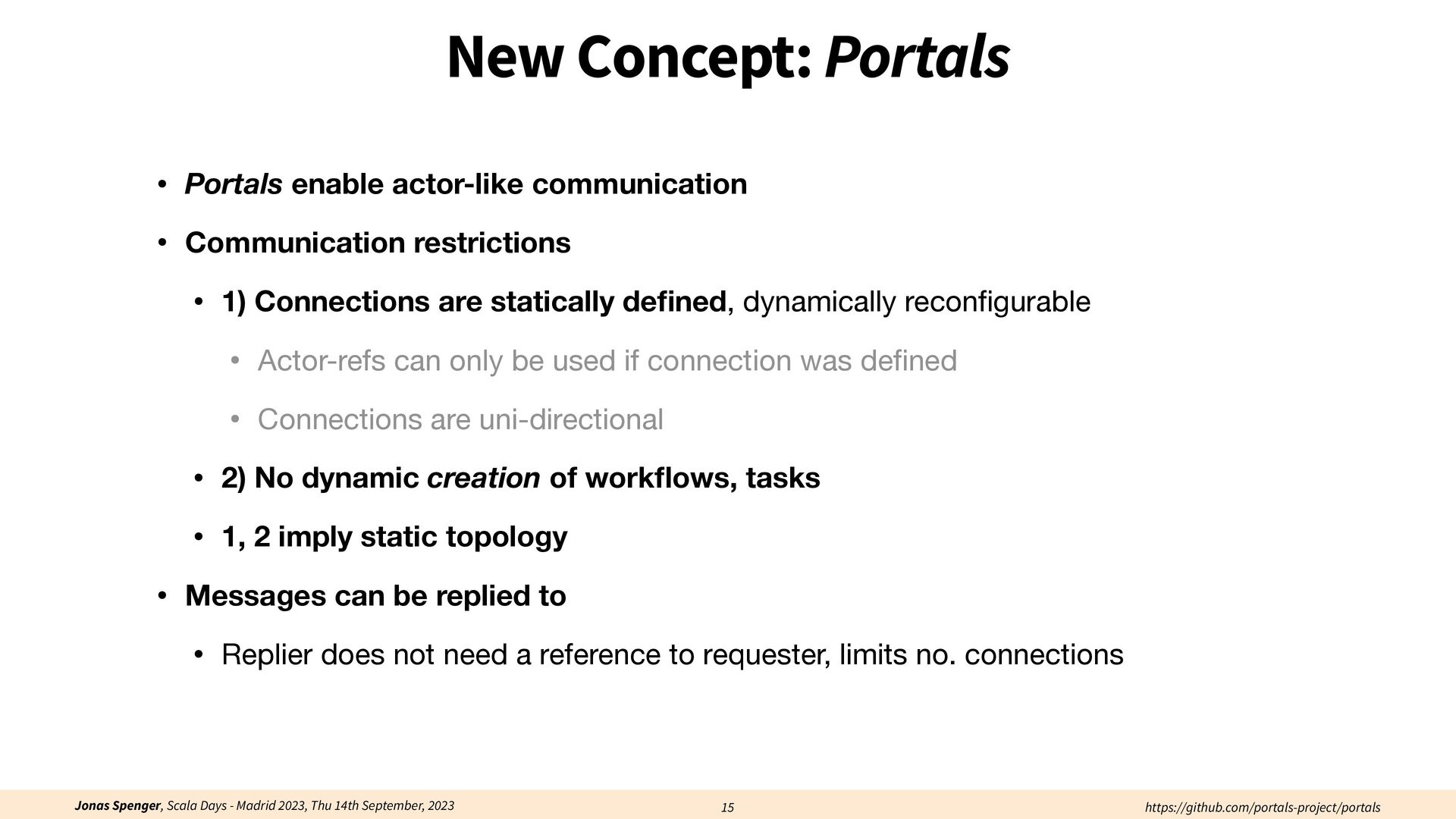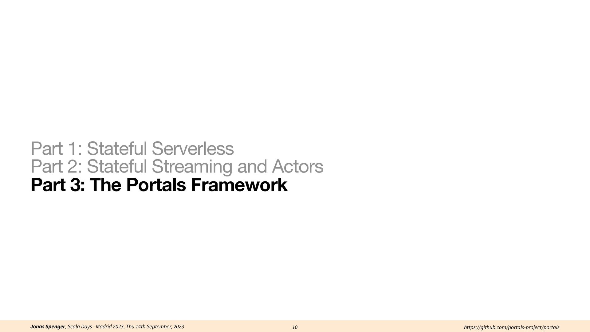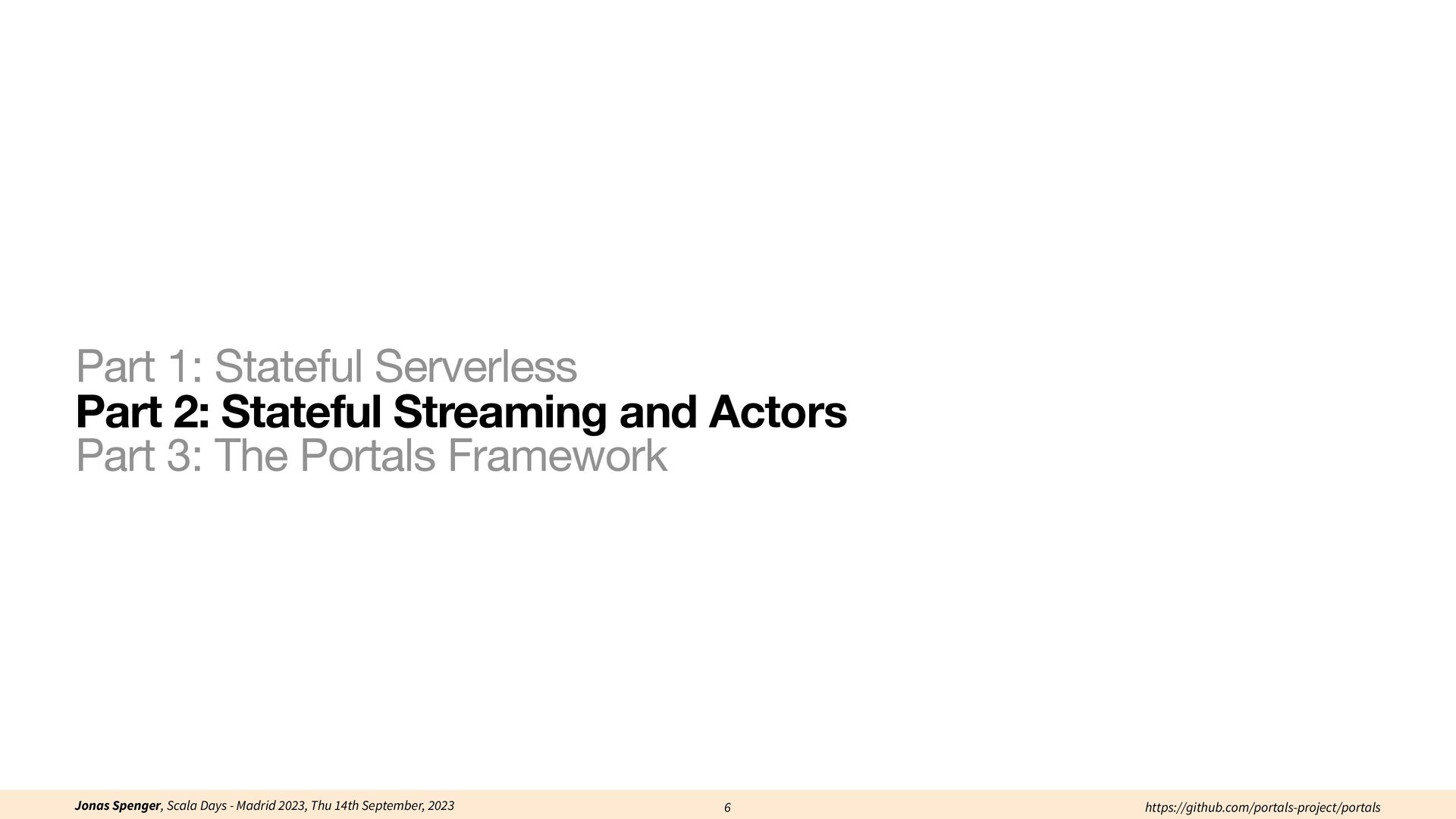 See also: Spenger, Jonas, Paris Carbone, and Philipp Haller. "Portals: An extension of data fl ow streaming for stateful serverless.", 2022, ONWARD'22. Processing through atomic (transactional) steps: • Consume an atom ("batch of events") • Processes the whole atom • Produce the side-e ff ects (new events, state updates) Atomic Processing Contract: