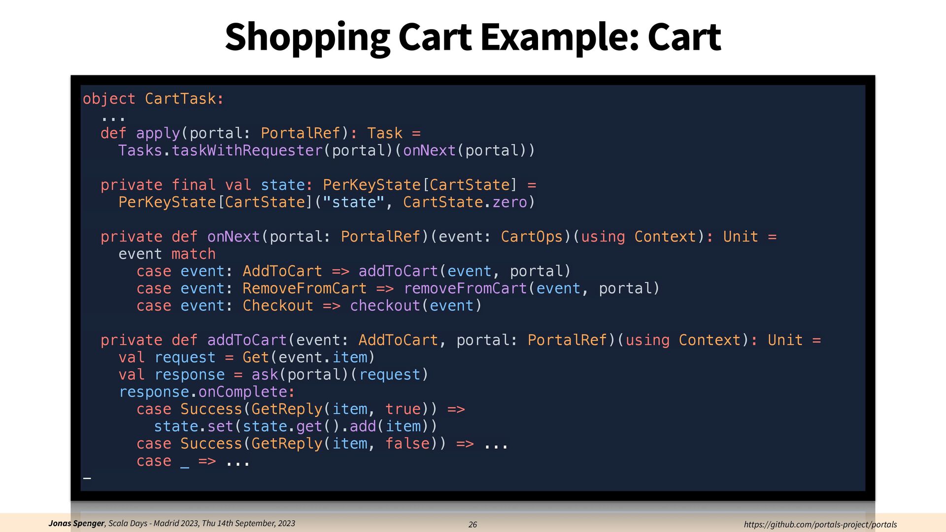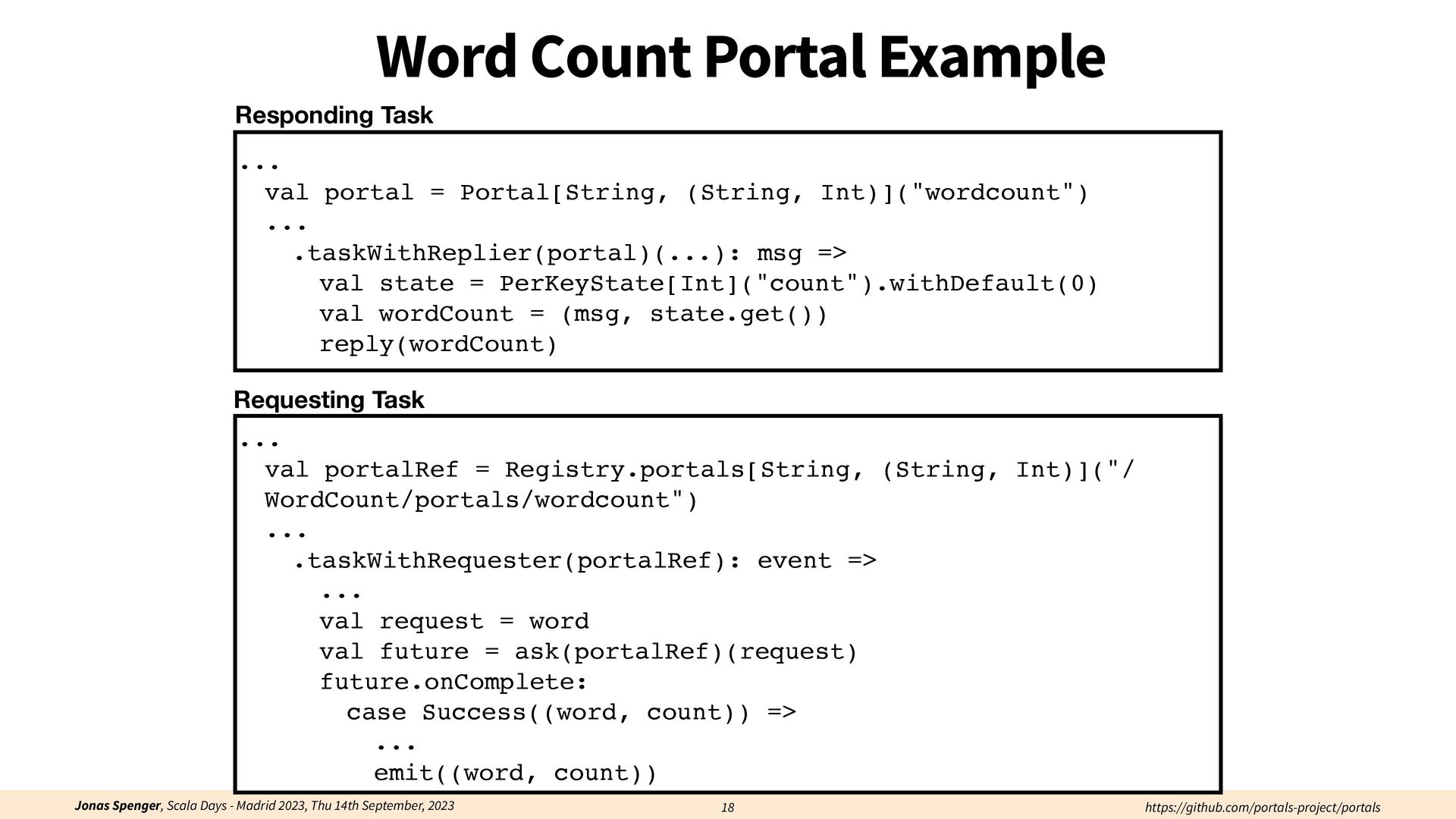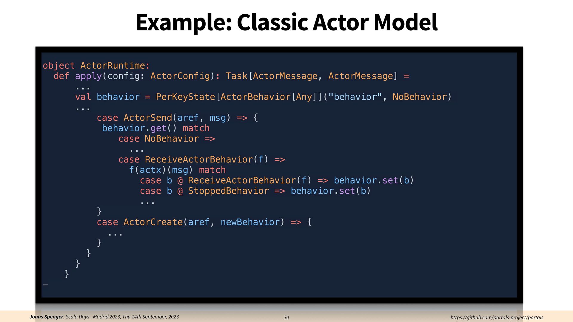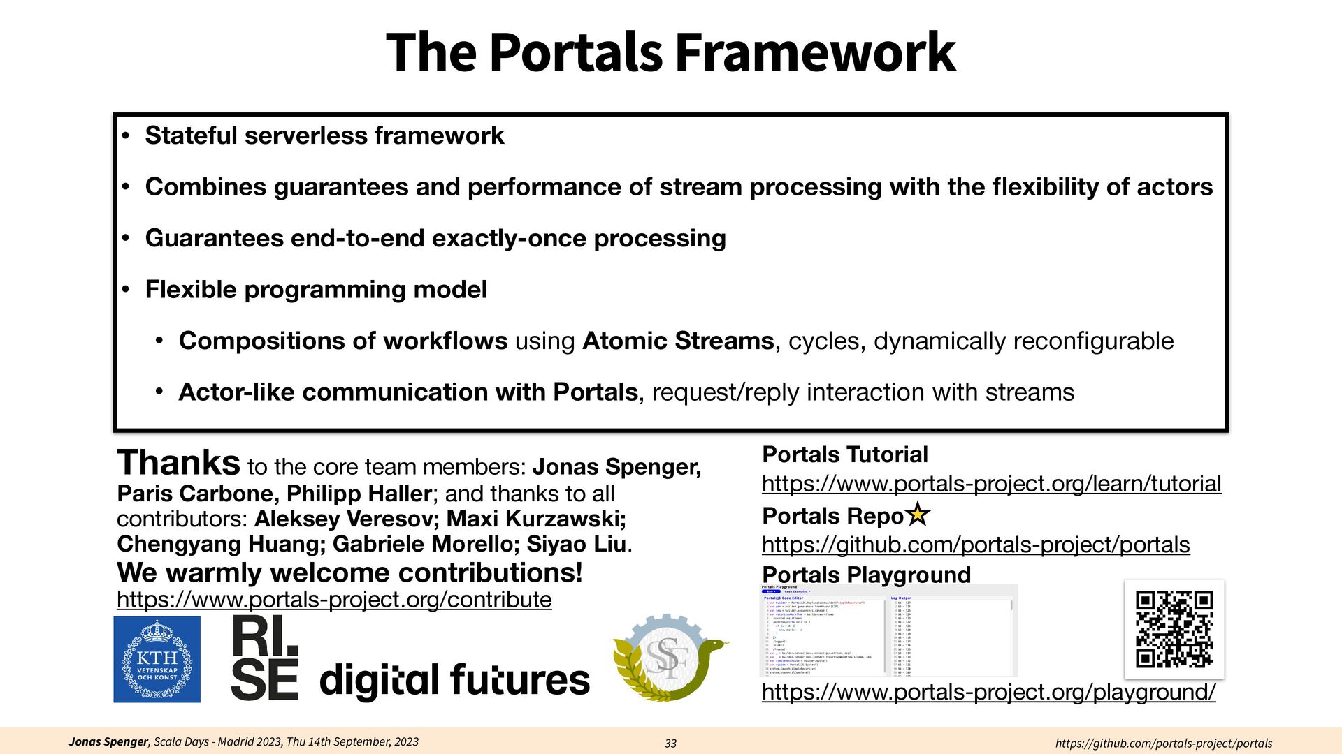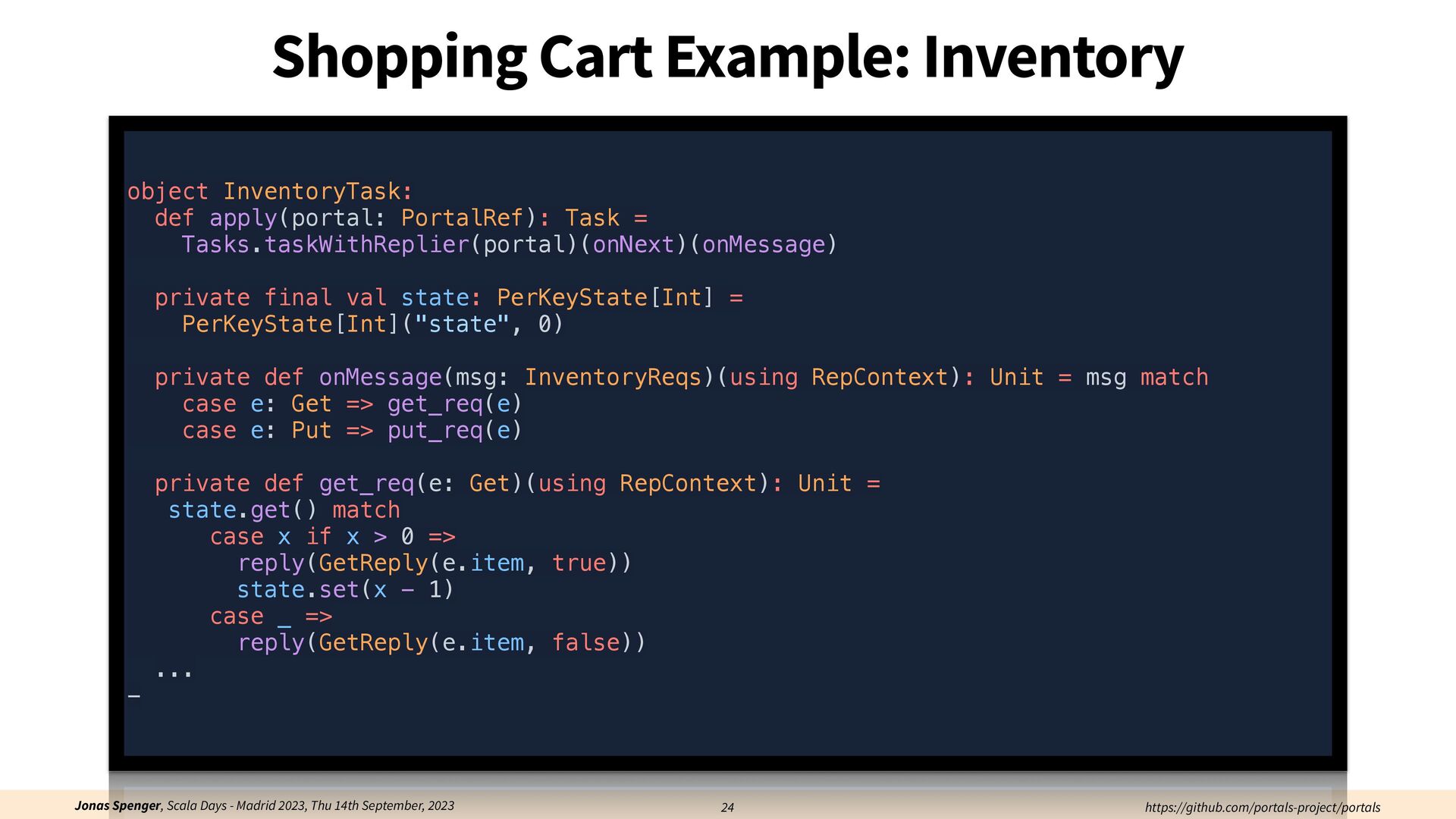 See also: Spenger, Jonas, Paris Carbone, and Philipp Haller. "Portals: An extension of data fl ow streaming for stateful serverless.", 2022, ONWARD'22. Processing through atomic (transactional) steps: • Consume an atom ("batch of events") • Processes the whole atom • Produce the side-e ff ects (new events, state updates) Atomic Processing Contract: