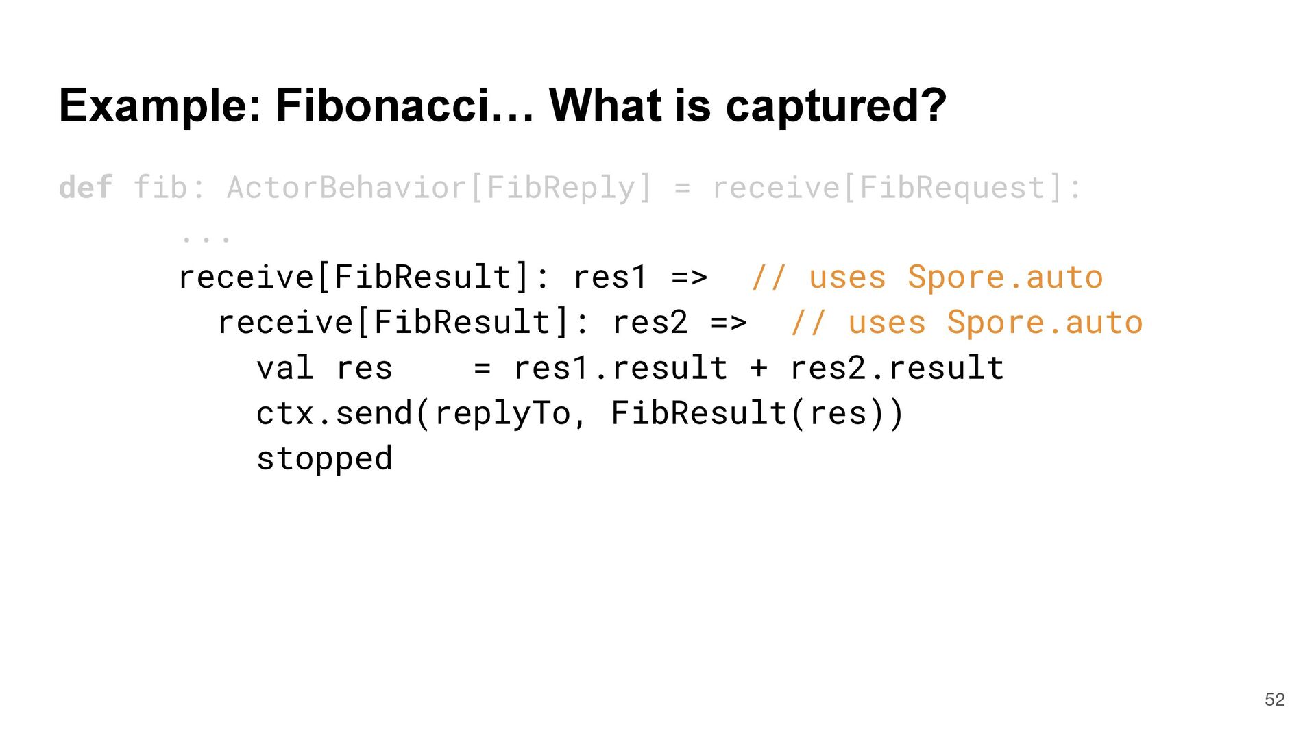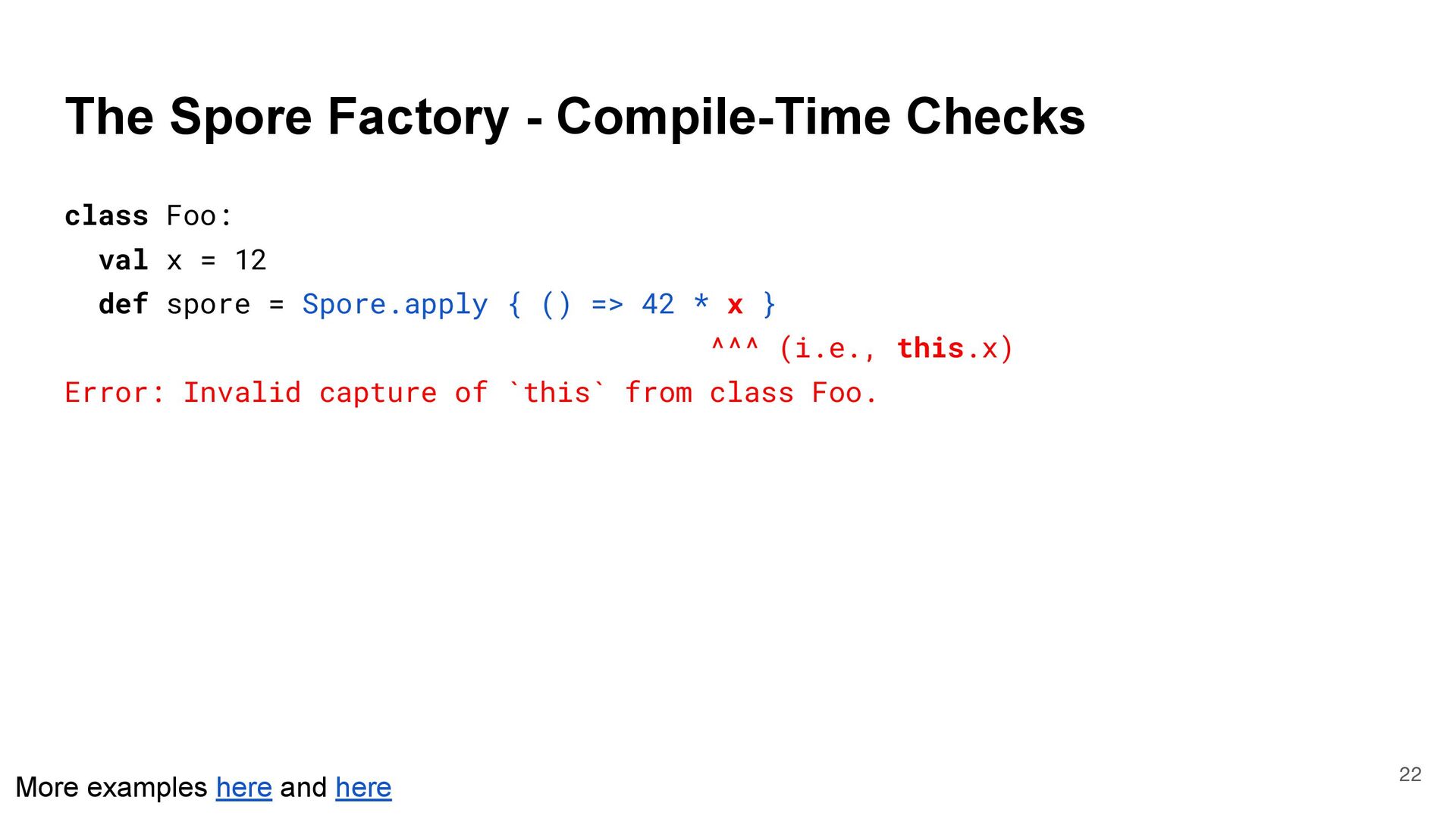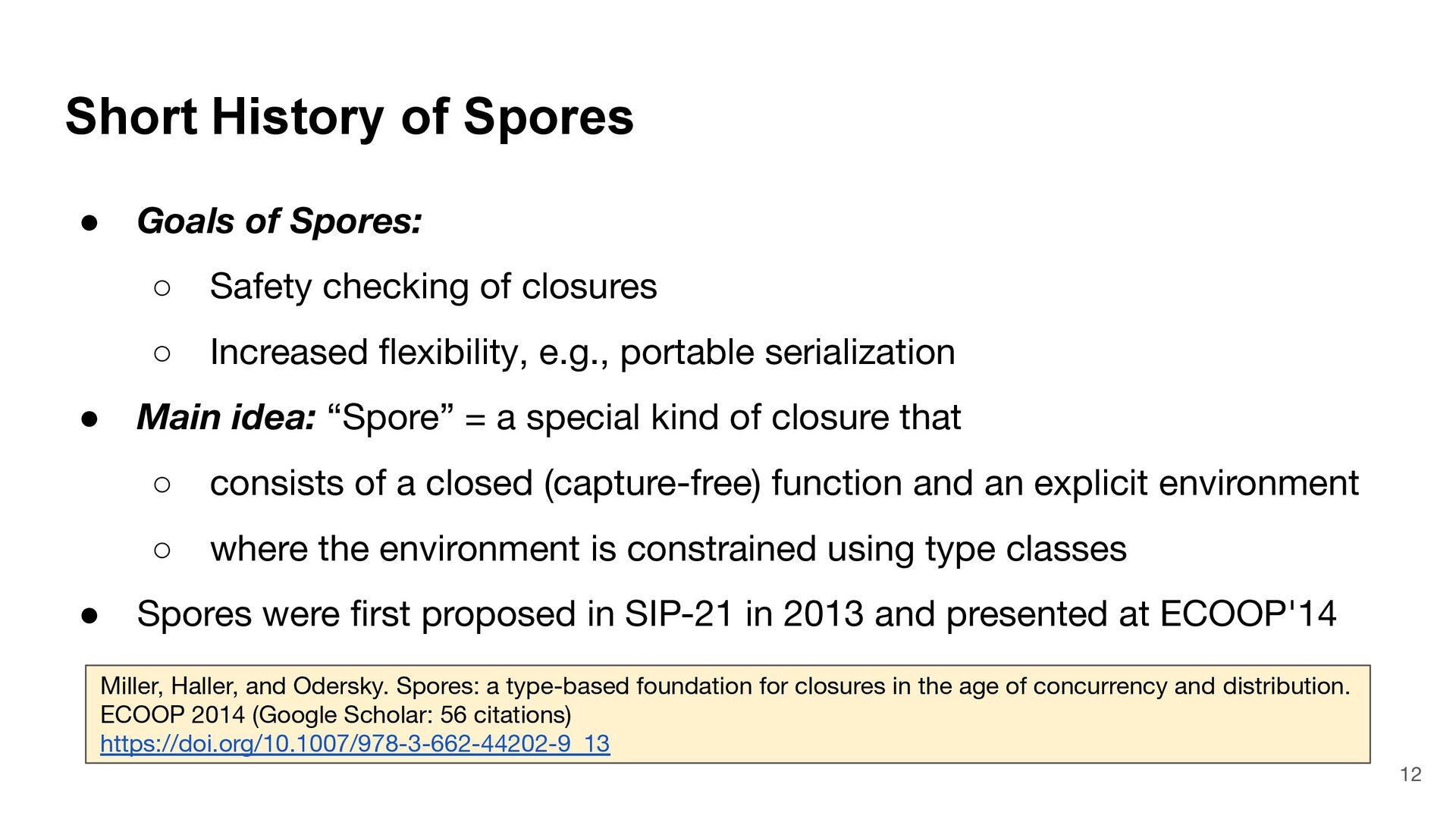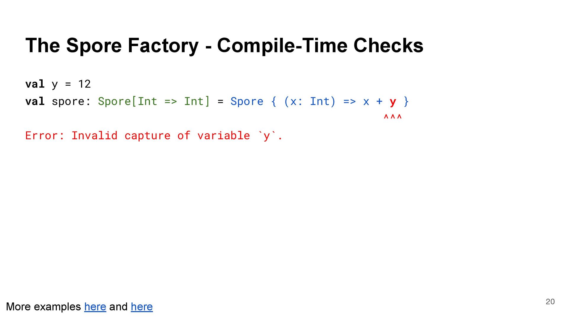 = { (num: Int) => num < Global.fld } assert(numbers.filter(fun), List(3, 2, 4)) What is Captured and What isn't? 4 object Global { val fld = 5 } val fun = { (num: Int) => num < Global.fld } assert(numbers.filter(fun), List(3, 2, 4)) val numbers = List(6, 3, 9, 2, 4) def mkFilter(threshold: Int) = (num: Int) => num < threshold val fun = mkFilter(5) assert(numbers.filter(fun), List(3, 2, 4)) class Filter(threshold: Int) extends Int => Bool: def apply(num: Int) = num < threshold val fun = Filter(5) assert(numbers.filter(fun), List(3, 2, 4)) Top-level object captured "captured" Not captured