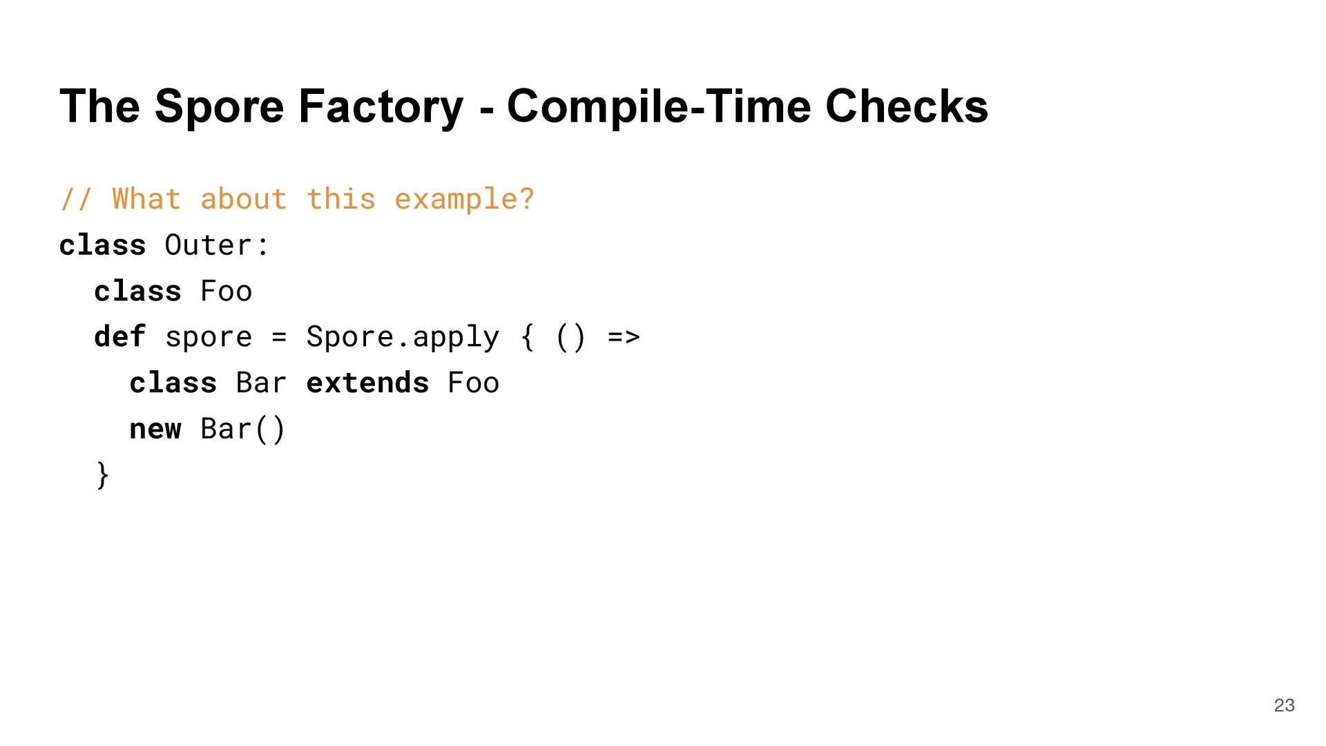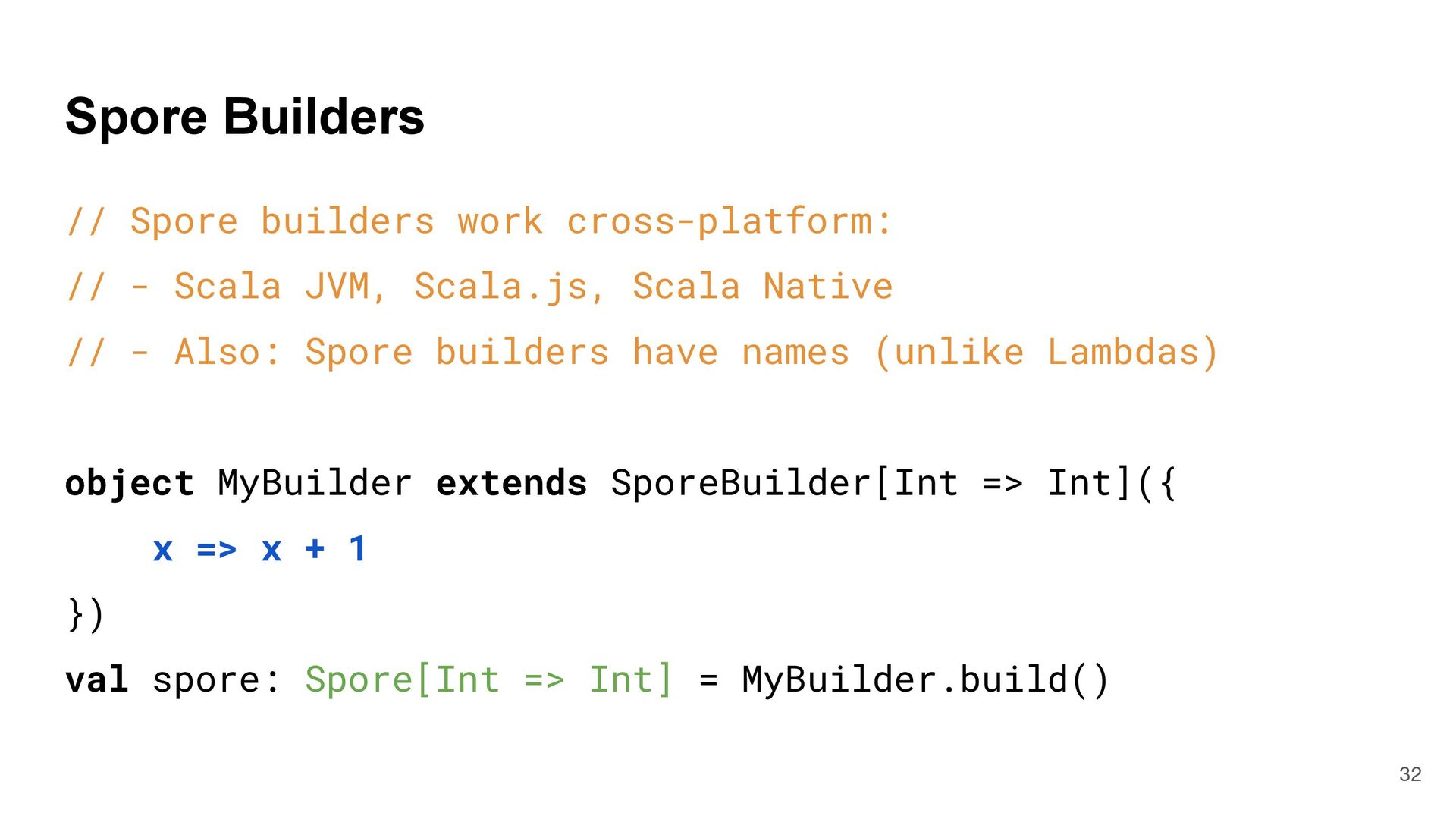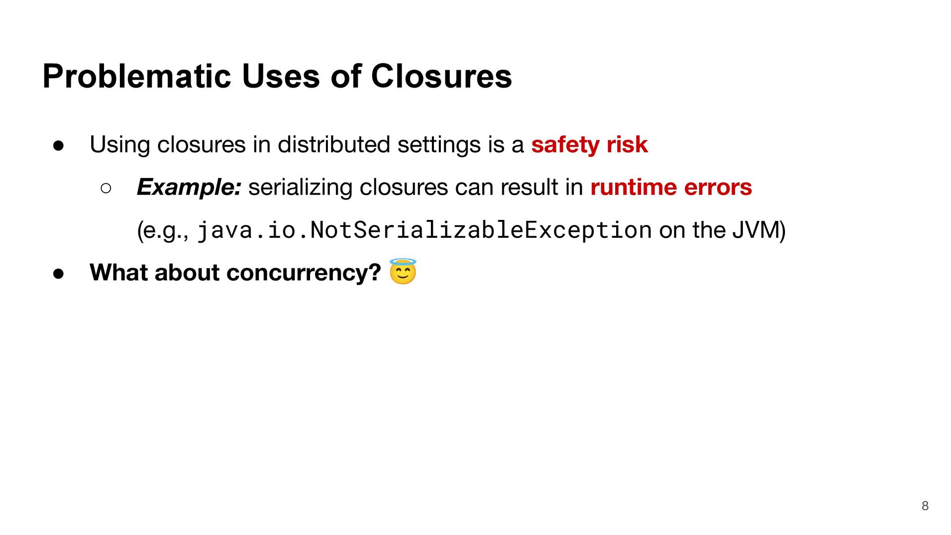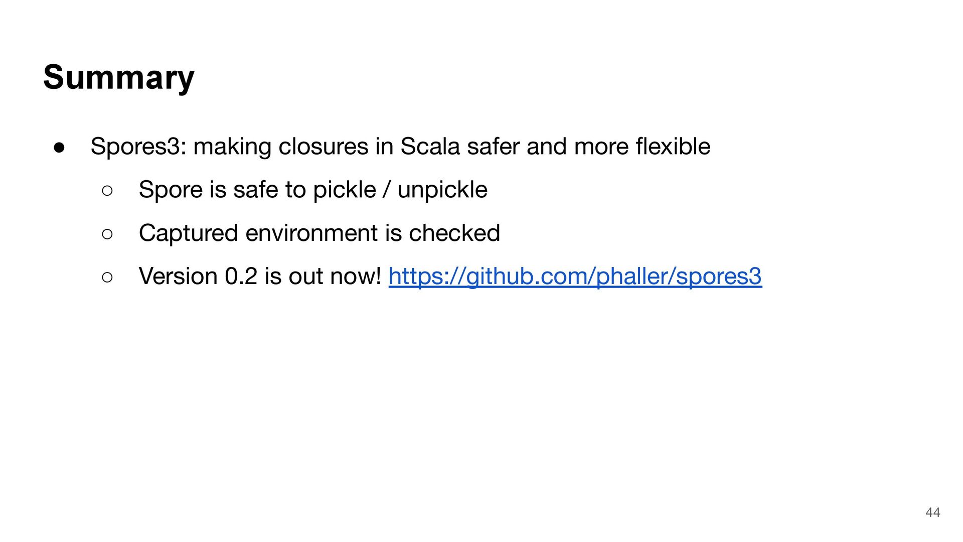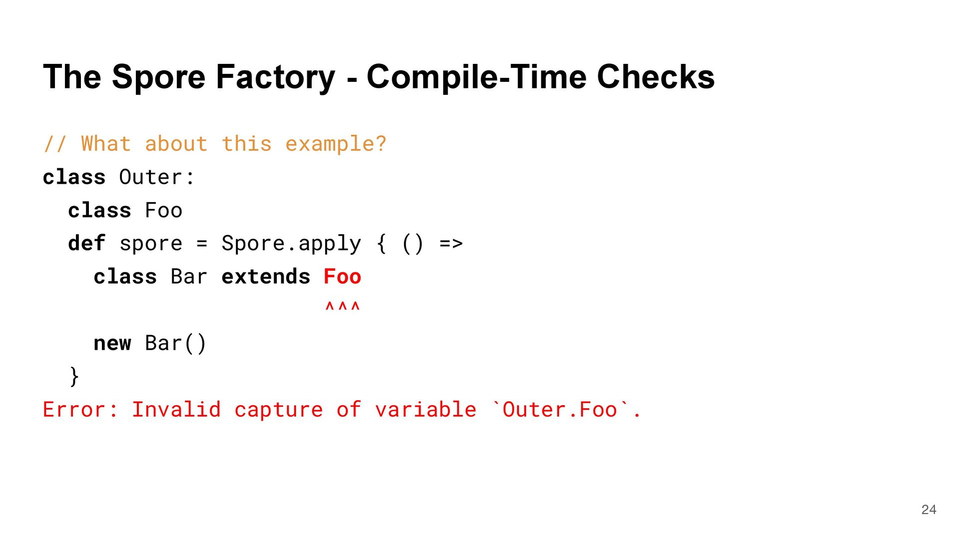 = { (num: Int) => num < Global.fld } assert(numbers.filter(fun), List(3, 2, 4)) What is Captured and What isn't? 4 object Global { val fld = 5 } val fun = { (num: Int) => num < Global.fld } assert(numbers.filter(fun), List(3, 2, 4)) val numbers = List(6, 3, 9, 2, 4) def mkFilter(threshold: Int) = (num: Int) => num < threshold val fun = mkFilter(5) assert(numbers.filter(fun), List(3, 2, 4)) class Filter(threshold: Int) extends Int => Bool: def apply(num: Int) = num < threshold val fun = Filter(5) assert(numbers.filter(fun), List(3, 2, 4)) Top-level object captured "captured" Not captured