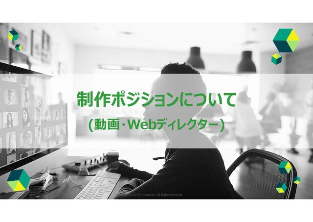 従業員インタビュー(Webディレクター) ▪Profile ・K・K 2021年入社(中途) ・前職:制作会社にて6年Webディレクターとし て企業のWebサイト制作に携わる ・プライベート:2児の父 ・休日の過ごし方:子供がまだ小さいので近くの公 園まで散歩したり、おでかけしたり、家族と過ごすこ とが多いです! ▪担当業務とやりがい エンタープライズ(大手一般企業)のWebディレクションを担うチームに所属しています。こ れまで『バーチャル株主総会』や、金融業界をはじめとした企業の『ウェビナー』配信などを担 当してきました。当社のWebディレクターは、Webサイト(配信の視聴ページ)を制作す るだけでなく、配信の監視対応も行い、お客様の映像が無事に配信を終えるまで見届け ます。ライブ配信を支えるWebディレクターならではの緊張感や、リアルタイムで完璧なもの をユーザーに届ける難しさはありますが、その分、プロジェクトを無事に完遂したときの達成 感や喜びはひとしおです。 ▪チームの雰囲気・特色 ▪Jストリームへの入社理由 ▪候補者へのメッセージ 当社には、物事を前に進める推進力や、自分で考えて実行に移す主体性を歓迎する風 土があります。今の環境や職場に少し窮屈さを感じている方には、当社はきっと合っていると 思います!逆に、受け身の方にとっては少し厳しい環境とも言えるかもしれませんが、推進力 や主体性を活かして挑戦したい方には、ぜひ興味を持っていただきたい会社です。 当社ではWebディレクター、営業、ライブチーム、そしてグループ会社のエンジニアチームが 一体となってプロジェクトに取り組んでいます。転職してきて感じたのは、助け合いの文化が 根付いているということ。案件を引き継いだ際、分からないことが多かった中で、惜しみなく 情報を提供し、手を差し伸べてくれた仲間たちへの感謝は今でも忘れません!この助け合 いの文化は、新しく入社される方にとっても大きな安心材料になると思いますね。 子供が生まれて、ワークライフバランスを見直したいと思っていたときに、Jストリームで働く 知人から紹介されたことがきっかけでした。家庭があると、通勤時間も惜しい。そんな思いを 持っている方は結構多いと思います。当社ではテレワーク主体の働き方ができるので、通 勤にかかる時間やエネルギーを家庭や仕事に還元できる。今の働き方が自分に合ってい ると思いますね。 修正まだ