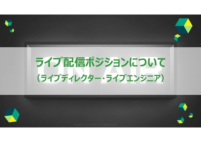 ┃ ライブ配信の内容 年間2,400件以上の現場対応実績 顧客のニーズに合わせて最適なライブ配信を実現 医薬 一般企業(医薬以外) スポーツ・エンタメ 領域 クライアント (例) 配信内容 (例) 年間 対応実績 ・芸能事務所、レコード会社 ・スポーツイベント事務局など 約2,000~2,200件 約100~200件 約100~200件 Web講演会や学会の配信が中心 ※全国の医療従事者に向けて、製薬に関す る情報(効能、治験データ等)を伝達する 目的で実施 社内外への情報発信・情報共有 を目的に実施 【例】 ・株主総会のライブ配信、新商品発表イベン ト、社員総会、社内イベントの配信など 一般視聴者に向けたコンテンツ配信 【例】 ・ファンクラブ会員向けの限定配信 ・コンサートのライブ配信 ・スポーツイベントのマルチアングル配信など