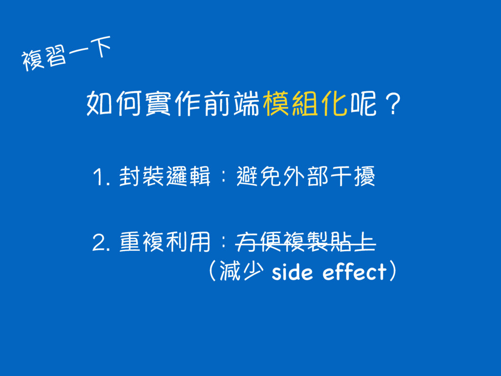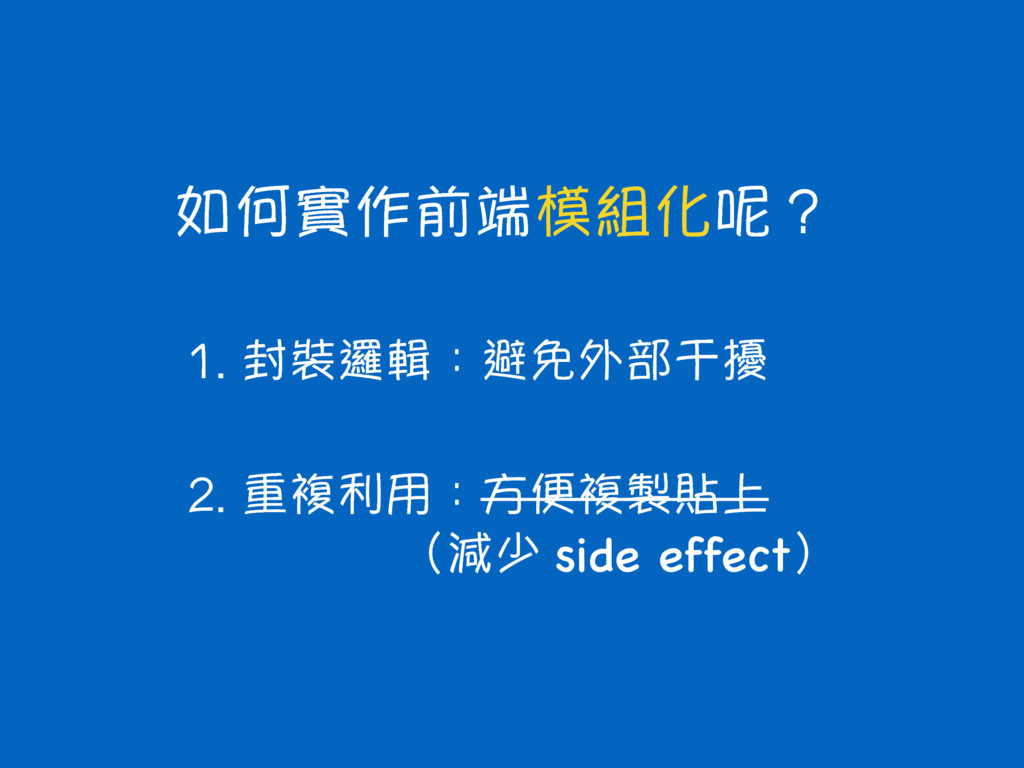 大部分的人都學過模組化Javascript,其實CSS跟html也是很需要模組化的東西,活動當中會介紹如何用React及CSS-Module將html及CSS模組化,並使用Webpack示範如何去bundle所有的模組。
