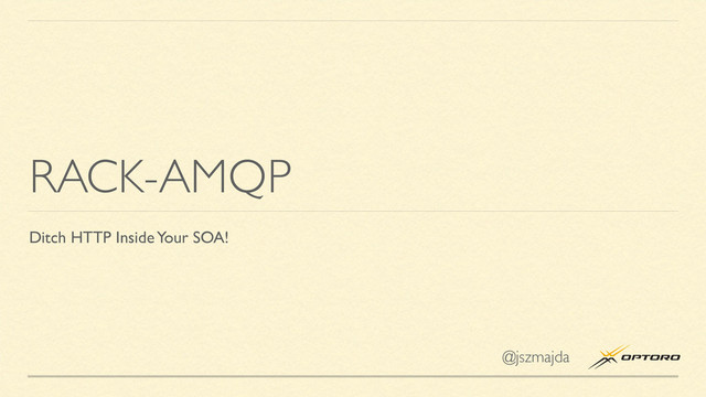 Rack-AMQP lets you serve your rack (and rails) apps over AMQP, a robust, open protocol for messaging. You get simple queues, load balancing, security, and persistent connections for free (plus pub-sub!)—without changing your app.