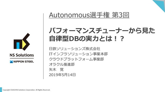 u 実DWHプロジェクト(Oracle BIEEベース)のデータモデル(スタースキーマ)・クエリパターンを元にした性能テストを実施 n 同等のテストをOracle12c Database In-Memory(オンプレミス) 上で同等の条件で性能⽐較 u クエリパターン・データベースサービス(LOW, MEDIUM, HIGH)ごとに性能値を測定 u ADWCの場合、ファクト表がHCC圧縮されているので各テーブルのセグメントサイズが、⾮常に⼩さくなる n 約8億件のデータが2.2GB程度に圧縮された (⾮圧縮の場合は、120GB程度のデータ) ⾃由分析 ファクト テーブル チャネル軸 テーブル 商品軸 テーブル 商品カテゴリ テーブル 時間軸 テーブル 区分 テーブル 約8億件(約2.2GB) 348件(1MB以下) 550件(1MB以下) 約6万件(約8MB) 約43万5000件(約54MB) 120件(1MB以下) 4パターンの 負荷が異なるクエリ 負荷 集計前件数 結果件 数 低 約1,000 10 中 約10万 10 ⾼ 約800万 10 特⼤ 約2億 120 データ クエリ