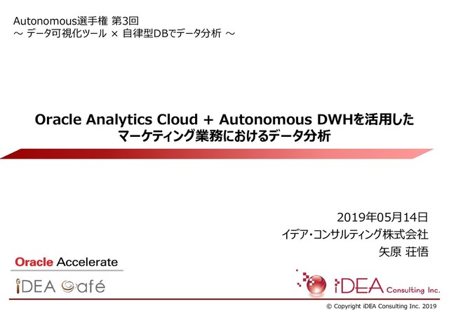 実演・デモでご覧頂いた画面やその補足情報です。 20 ADW DV BI DVD 入力データ (SALES_TRN_ML) 分析結果 (AR_SALES_RESULT) モデル作成 モデルからルールを取得 %script BEGIN DBMS_DATA_MINING.CREATE_MODEL( model_name => 'AR_SALES_MODEL', mining_function => DBMS_DATA_MINING.ASSOCIATION, data_table_name => 'SALES_TRN_ML', case_id_column_name => 'TRANSACTION_ID', settings_table_name => 'AR_SALES_MODEL_SETTINGS' ); END; %script create table AR_SALES_RESULT as SELECT a.attribute_subname Antecedent, c.attribute_subname Consequent, rule_support Support, rule_confidence Confidence, rule_lift Lift, rule_id, row_number() over (partition by rule_id order by a.attribute_subname DESC) piece FROM TABLE(DBMS_DATA_MINING.GET_ASSOCIATION_RULES('AR_SALES_MODEL', 25, null, null, null, 3, 1)) T, TABLE(T.consequent) C, TABLE(T.antecedent) A; マイニング機能 モデル:データから発見した法則 ルール:アソシエーション分析の結果で発見したA⇒Bのパターン