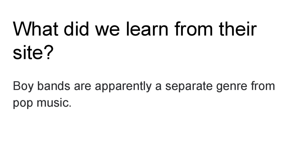 What did we learn from their site? Boy bands are