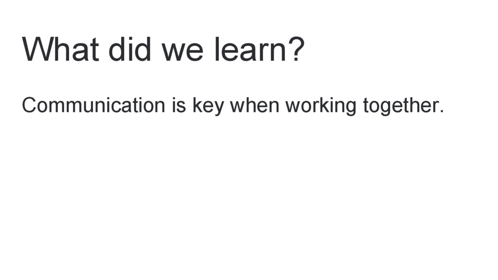 What did we learn? Communication is key when working together.