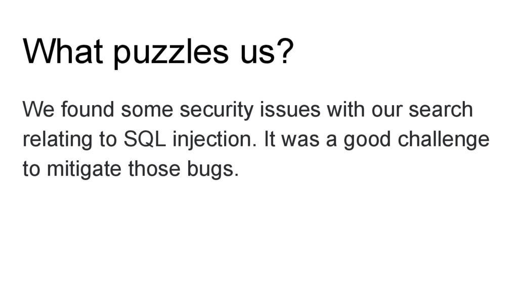 search relating to SQL injection. It was a good challenge to mitigate those bugs.