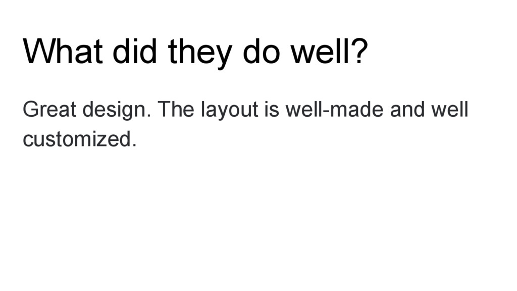 What did they do well? Great design. The layout is