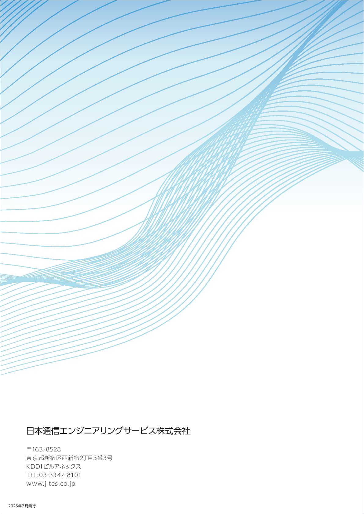 KDDIグループの一員として事業を展開しております。 全国の高速道路に埋設 ・ 添架された基幹系光ケーブルネットワークの運用 ・ 保守からスタートし、 現 在では一般国道の情報ボックスや道路、 軌道、 海底線陸揚局などの陸上部にも事業範囲を拡大しており、 皆さまへの安定的な通信サービスを確保するため本社のほか全国27か所に拠点を設け、 災害時にはも ちろんのこと、 24時間365日迅速な対応に努めております。 また、 これらの事業を通じて蓄積したノウハウを駆使し、 高速道路や関連するエリアでの電気通信工 事、 電気工事、 管工事等の建設分野、 さらにはDX時代の中、 ICTソリューションを活用した調査 ・ 設計な どにも積極的に取り組んでおります。 このように調査 ・ 設計、 工事、 保守、 ICTソリューションのシナジー効果を最大限に発揮し、 ライフデザ インを支える通信インフラの総合エンジニアリング企業を目指します。 今後とも皆さまのご理解とご支援を賜りますよう、 宜しくお願い申し上げます。 人と社会をICTで結び、 豊かな未来へつなぐJ-TES 2