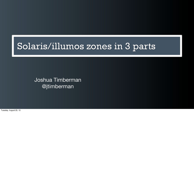 Tuesday, August 20, 13 I could just talk about zones, but then, you could just go read the documentation, and my blog post about them. Instead, let's start off with my story of how I got here.