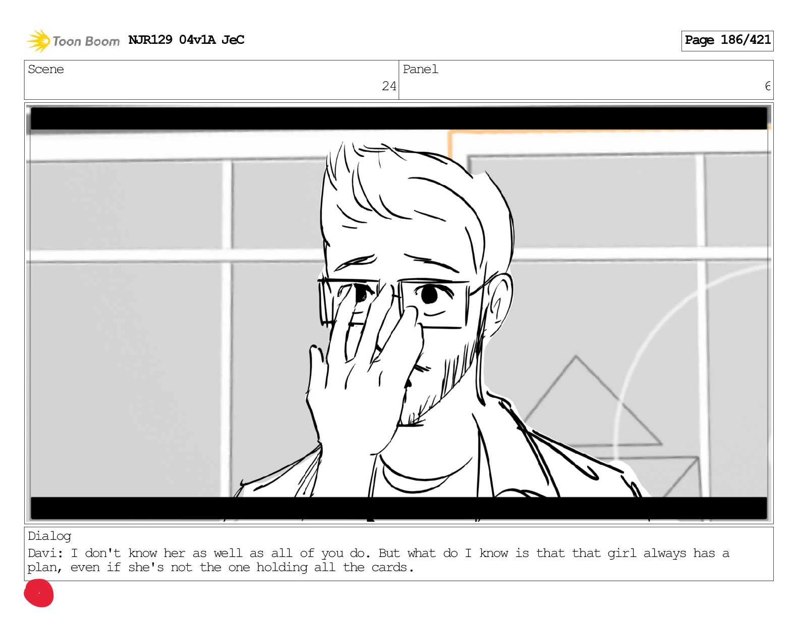 as well as all of you do. But what do I know is that that girl always has a plan, even if she's not the one holding all the cards. NJR129 04v1A JeC Page 186/421