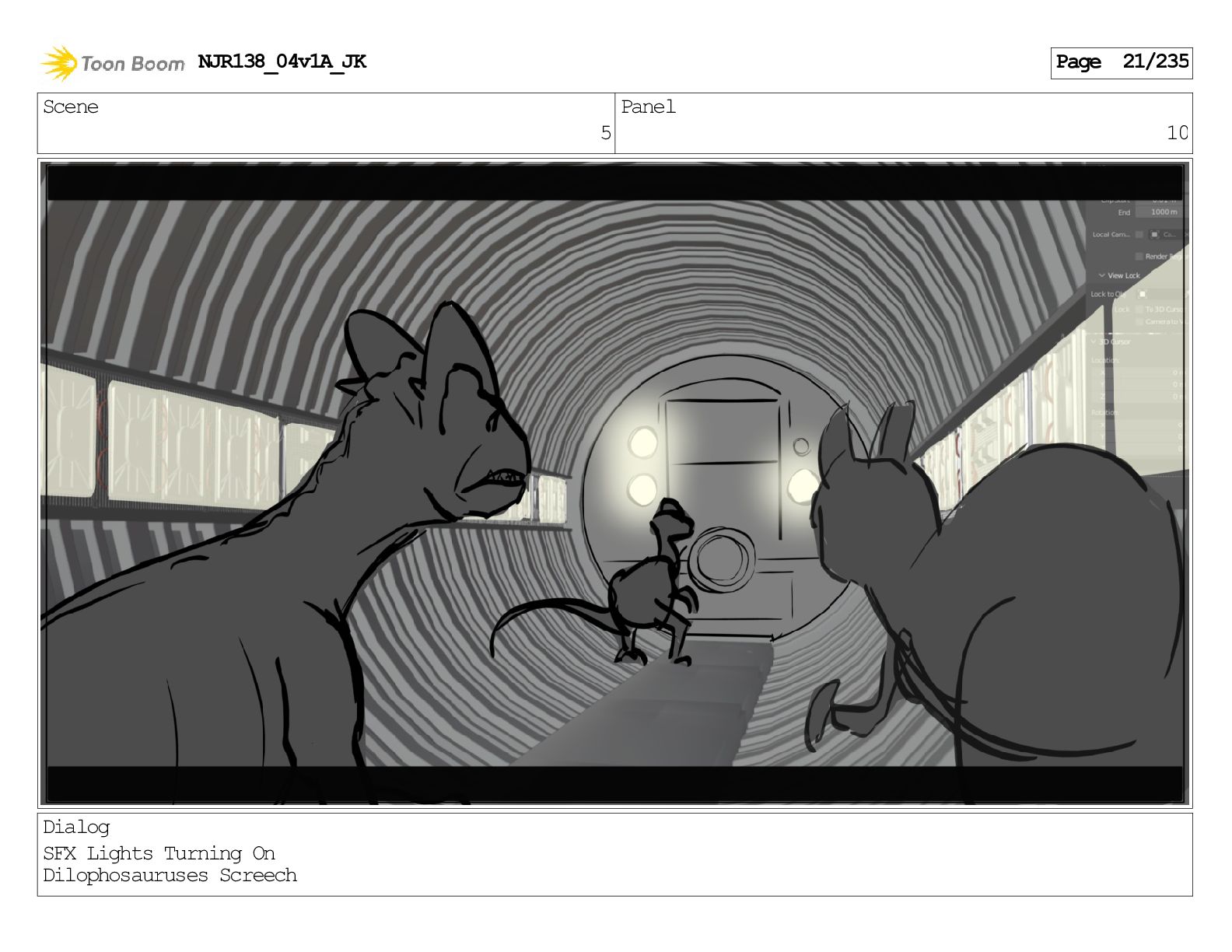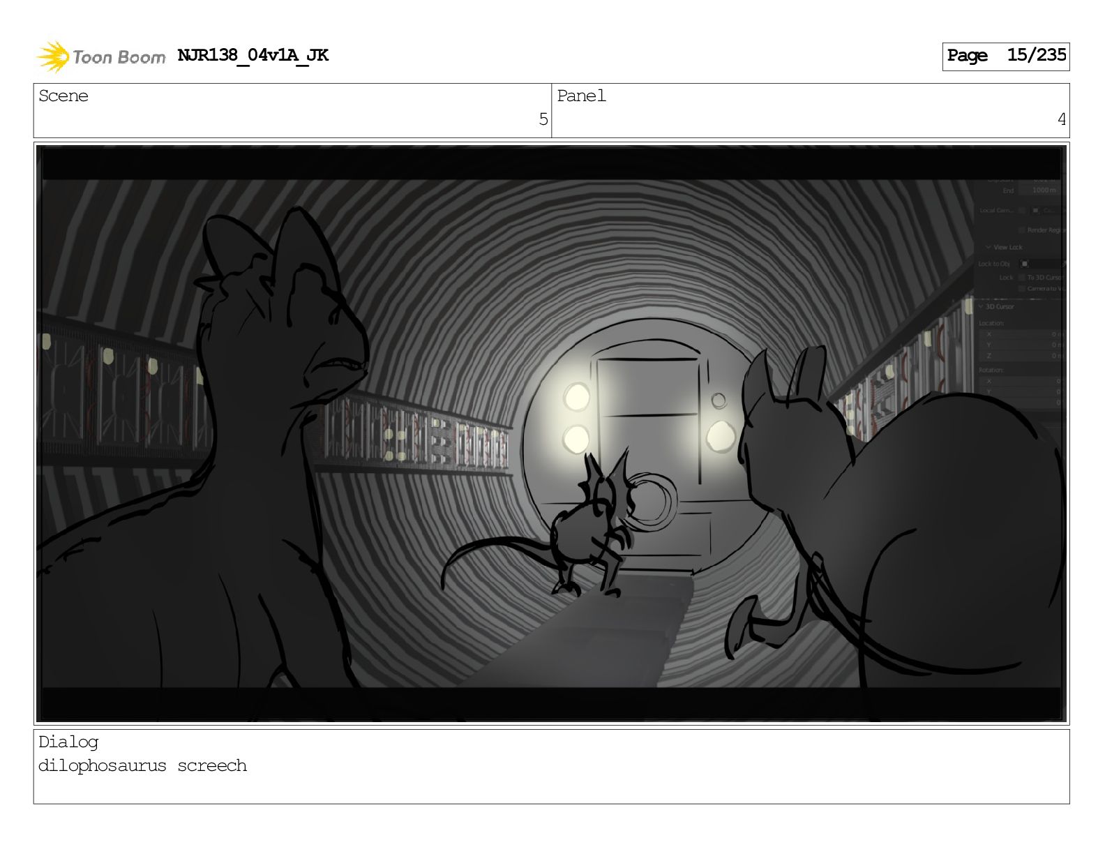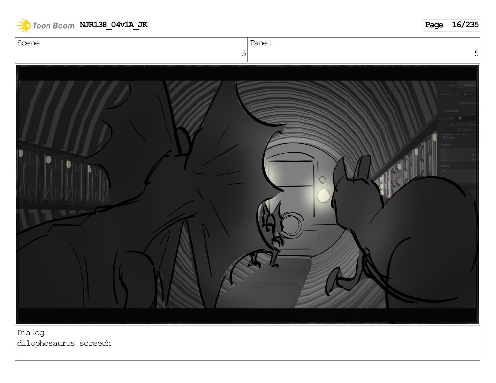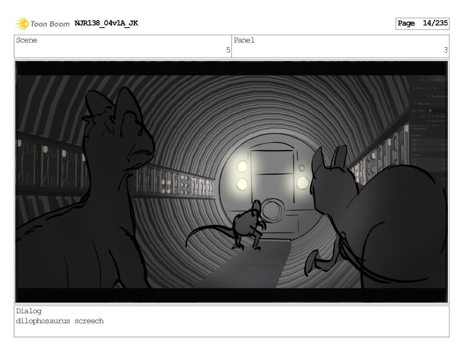 Scene 1 Panel 1 Dialog Dilophosaurus screeching NJR138_04v1A_JK Page 1/235