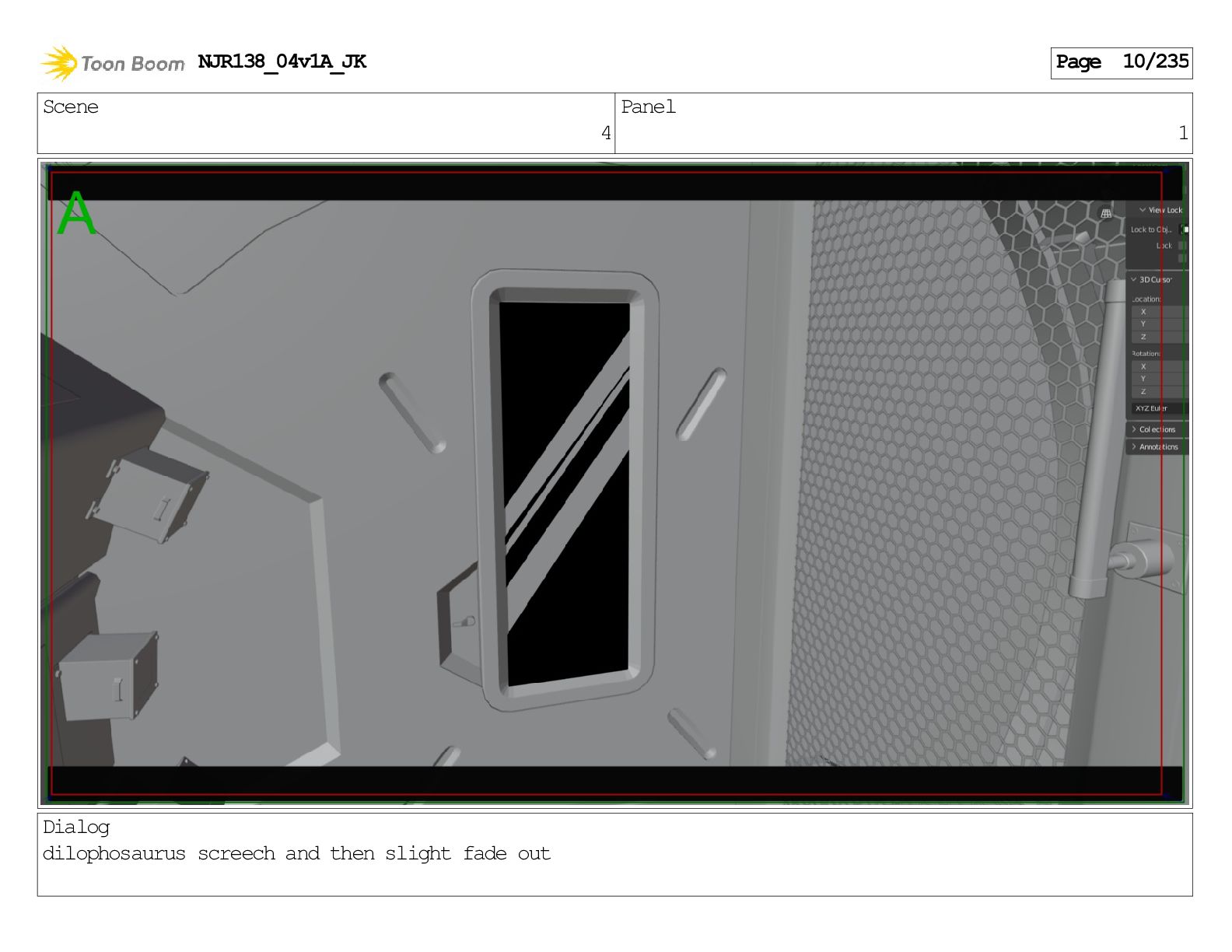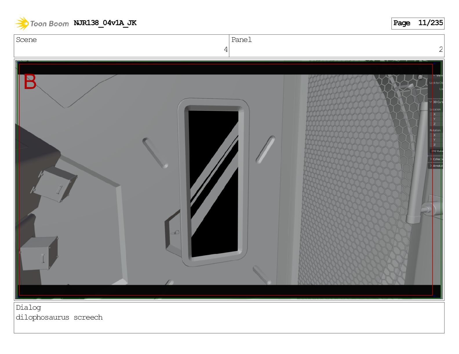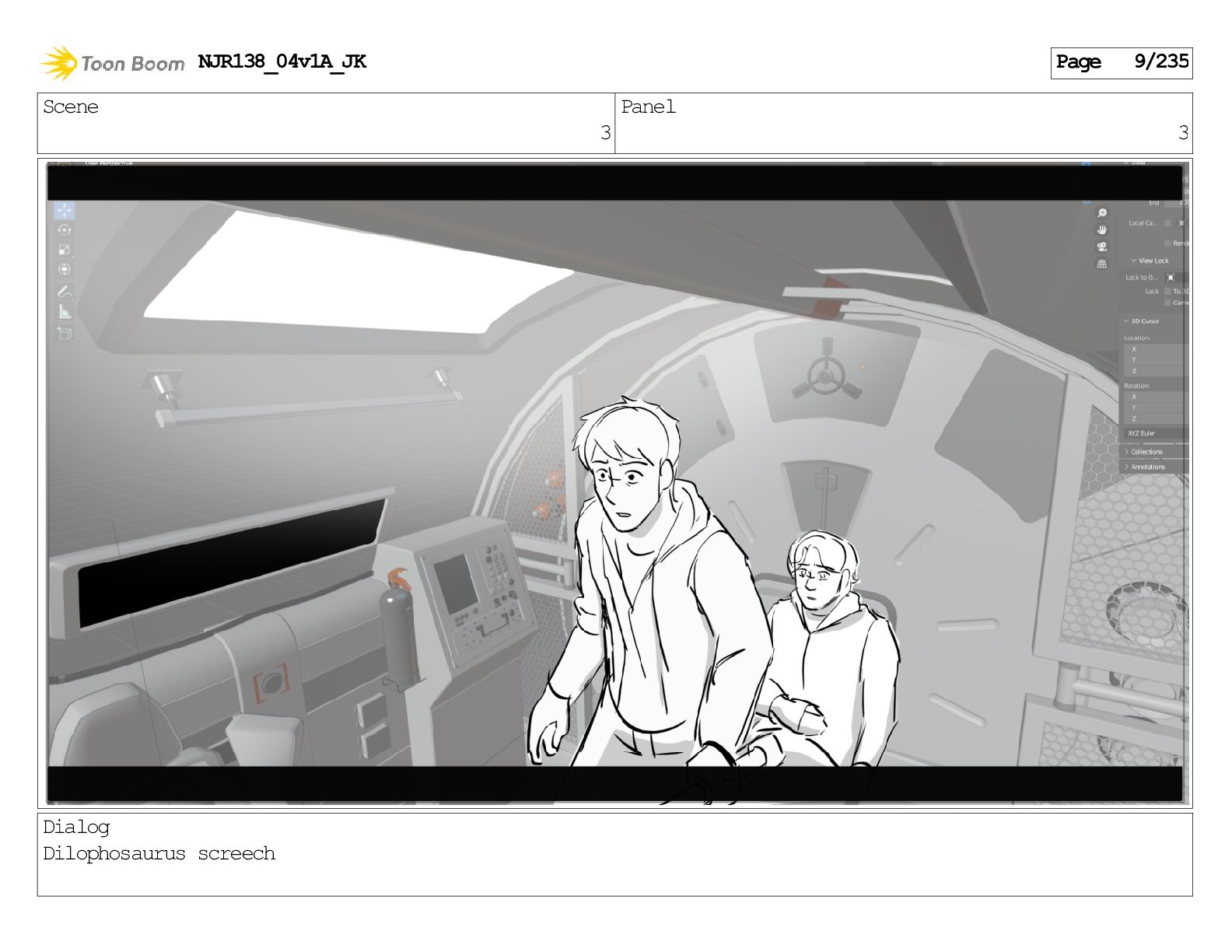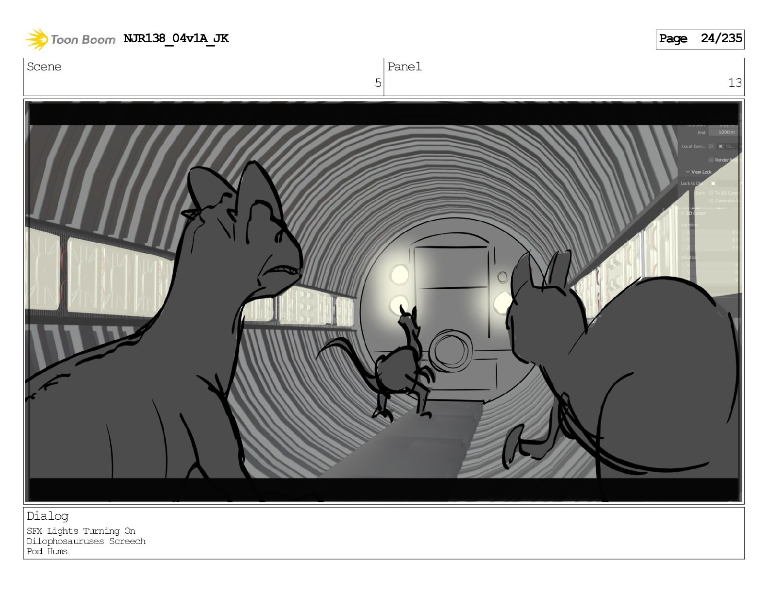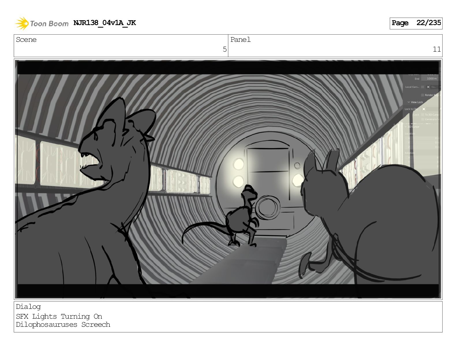 Scene 1 Panel 1 Dialog Dilophosaurus screeching NJR138_04v1A_JK Page 1/235