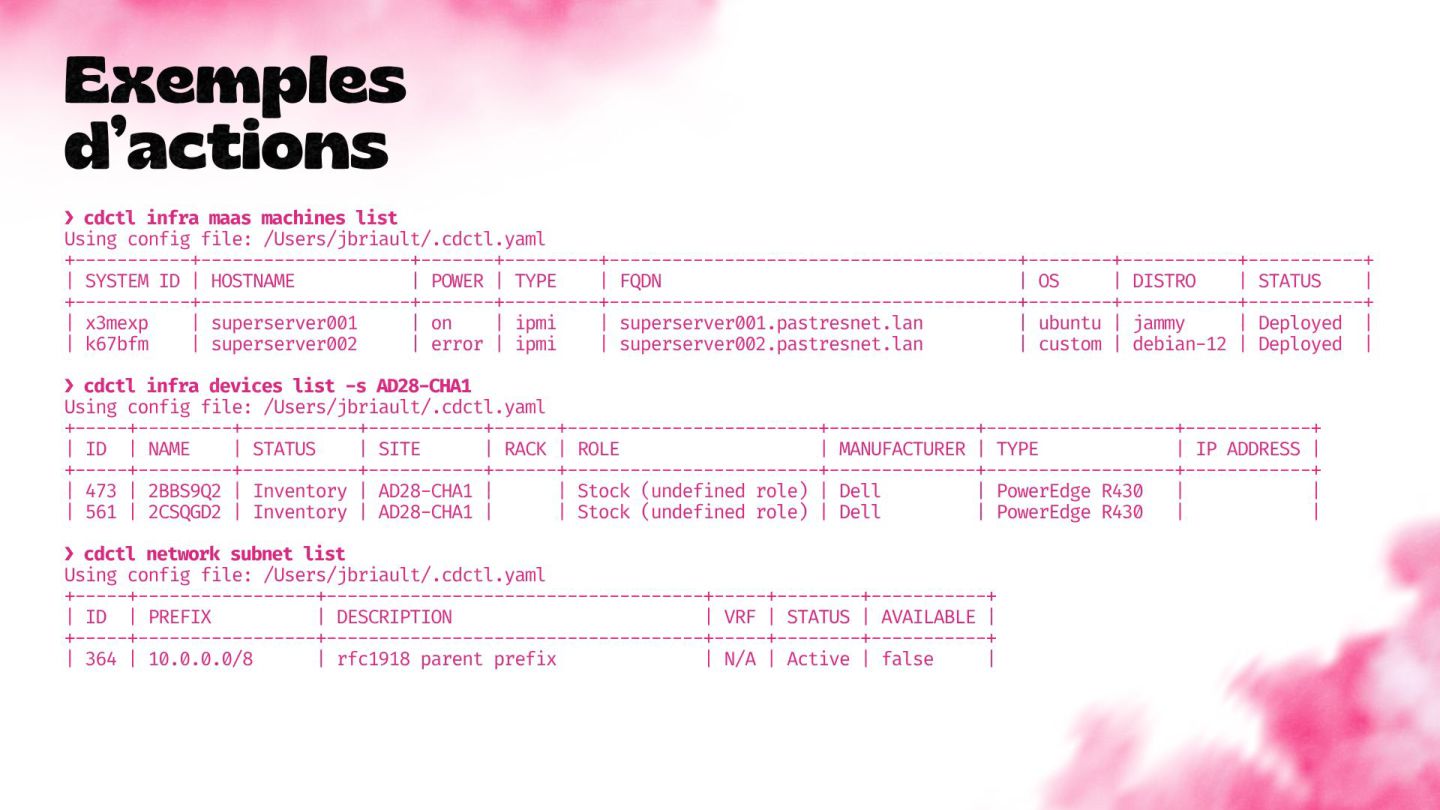 Dans ce talk, je vous raconte comment un simple outil en ligne de commande, taillé sur-mesure pour notre stack et nos équipes, est devenu l’interface préférée des contributeurs pour interagir avec notre plateforme cloud.
