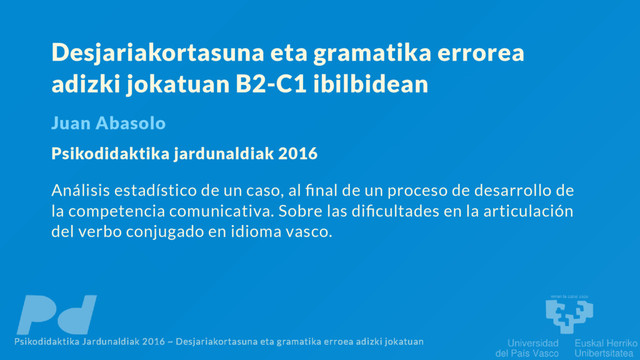 gramatika-errore zeri esan ahal dakiokeen azaldu behar nuke hasieran “ “ Psikodidaktika Jardunaldiak 2016 ~ Desjariakortasuna eta gramatika erroea adizki jokatuan 2