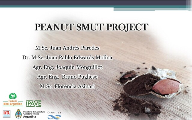 2012 - 2013 2013 - 2014 2014 - 2015 2015 - 2016 Incidencia Ind. Severidad 2012/13 2013/14 2014/15 2015/16 Campañas agrícolas 0,0 3,0 6,0 9,0 12,0 15,0 Incidencia (%) 0,00 0,10 0,20 0,30 0,40 0,50 Ind. Severidad (0-4) 12,6 10,0 9,9 8,1 0,41 0,31 0,30 0,26 12,6 10,0 9,9 8,1 0,41 0,31 0,30 0,26 A A A A Incidencia y severidad del carbón del maní Incidencia Ind. Severidad Incidence (%) Severity index (0-4) Severity index Incidence