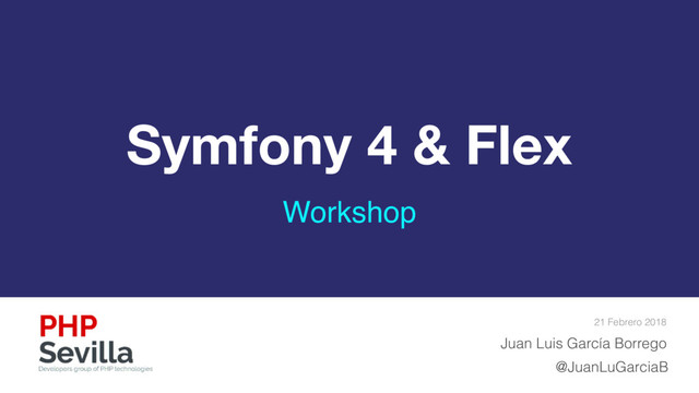 Symfony 4 & Flex Workshop @JuanLuGarciaB Juan Luis García Borrego