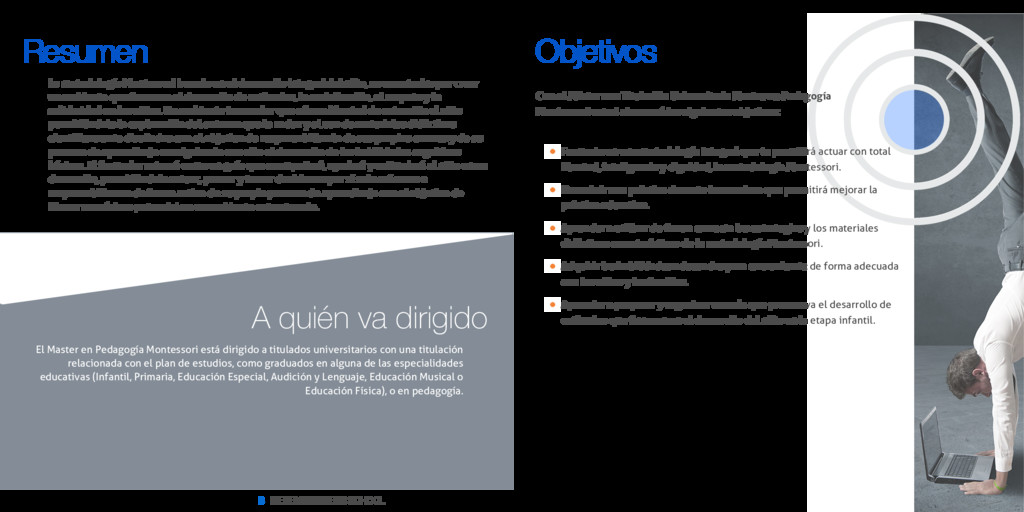 Índice Master en Pedagogía Montessori 1. Sobre Inesem 2. Master en Pedagogía Montessori Descripción / Para que te prepara / Salidas Laborales / Resumen / A quién va dirigido / Objetivos 3. Programa académico 4. Metodología de Enseñanza 5. ¿Porqué elegir Inesem? 6. Orientacion 7. Financiación y Becas 8. Admisión