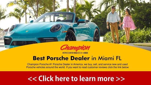 Dealer in America we buy, sell, and service new and used Porsche vehicles around the world. If you want to read customer reviews & Get more info about best Porsche dealers click the link below Best Porsche Dealer in Miami FL Champion Porsche #1 Porsche Dealer in America. we buy, sell, and service new and used Porsche vehicles around the world. If you want to read customer reviews click the link below
