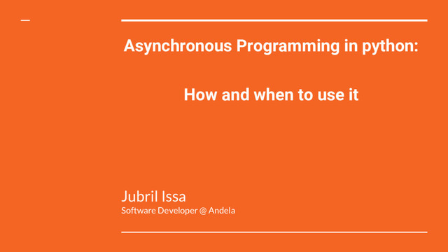library in python 3.5 + - Makes it more clear that your code is asynchronous (easier to think about than threads) - Better than callback and promises - The async keyword goes before def to show that a method is asynchronous. - The await keyword replaces yield from and makes it more clear that you are waiting for a coroutine to finish.