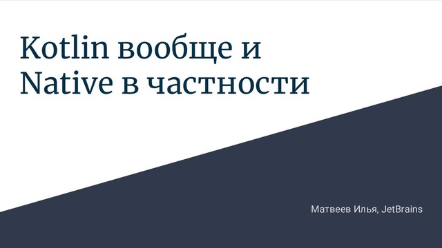 Наверняка вы слышали про Kotlin: новый JVM-based язык от JetBrains. Но знаете ли вы, что он также компилируется в JavaScript или в нативный код? В докладе расскажем о проекте Kotlin/Native, что это такое, и чем он отличается от Kotlin/JVM. Также поговорим о поддержке мультиплатформенных проектов на Kotlin, и сложностях и возможностях, которые привносит компиляции Kotlin напрямую в машинный код.