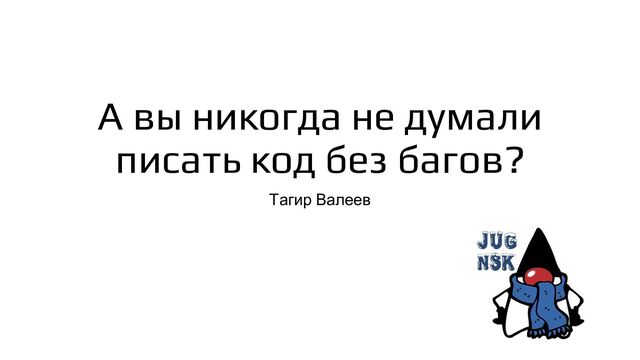 [JUGNsk #23] Тагир Валеев: "А вы никогда не думали писать код без багов?"