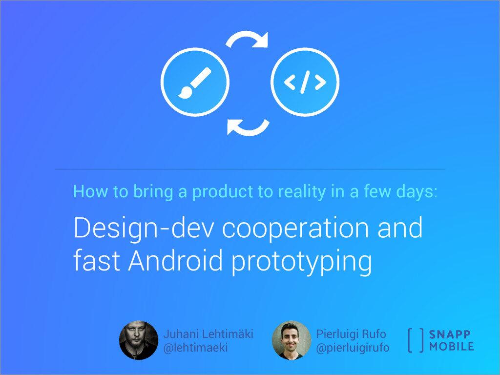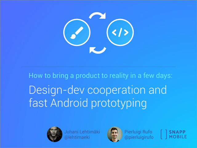days: Design-dev cooperation and fast Android prototyping Juhani Lehtimäki @lehtimaeki Pierluigi Rufo @pierluigirufo