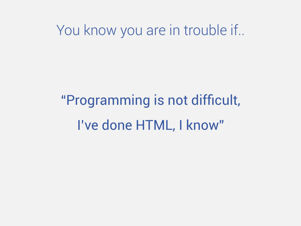 “Programming is not difficult, I’ve done HTML, I know” You