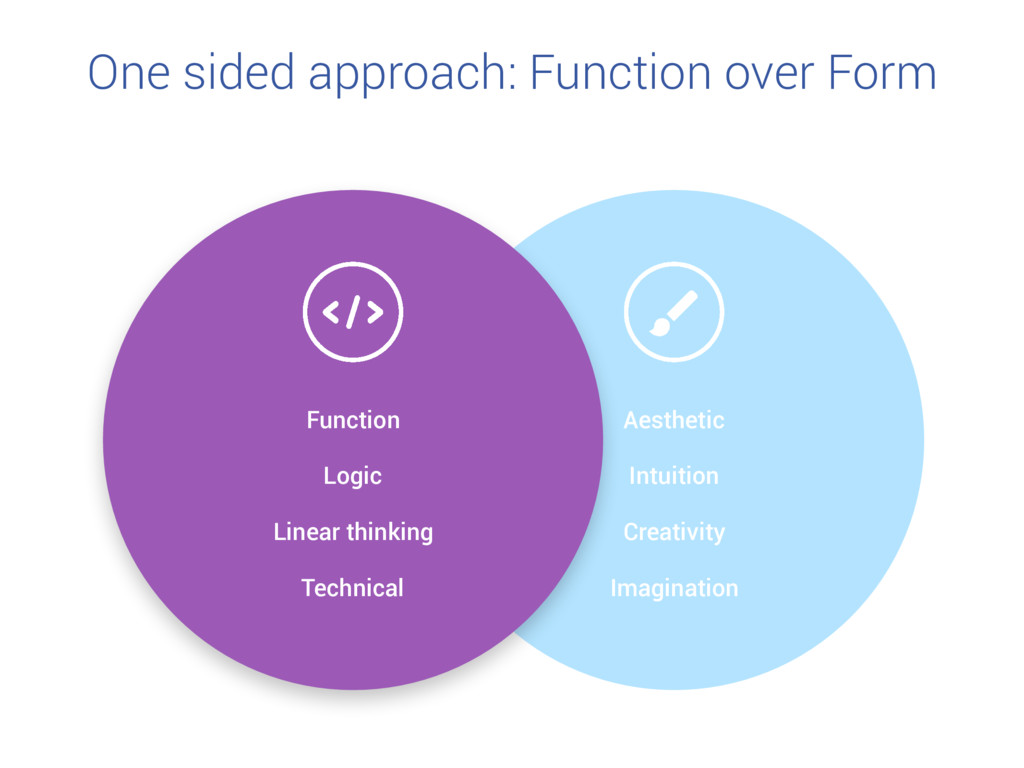 One sided approach: Function over Form Function Logic Linear thinking