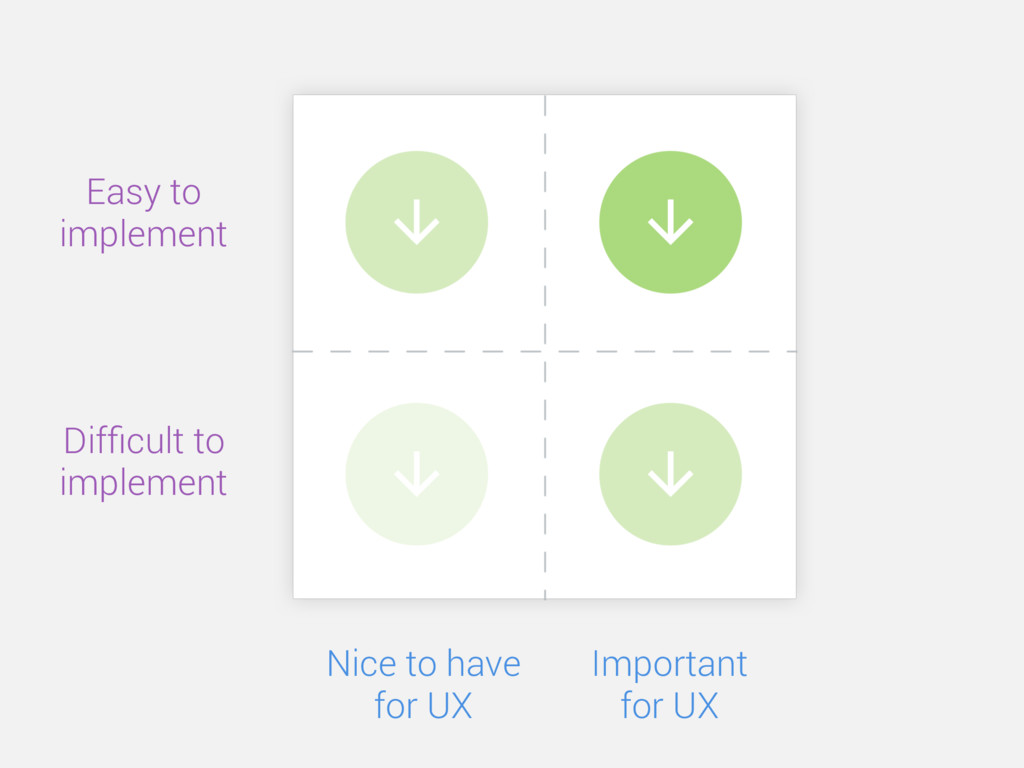 Difficult to implement Easy to implement Important for UX Nice