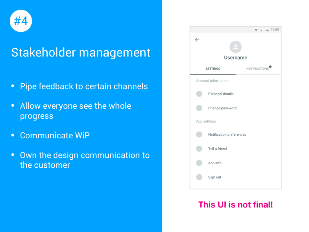 everyone see the whole progress • Communicate WiP • Own the design communication to the customer #4 This UI is not final!