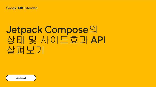 & 리컴포지션 시 별도 계산없이 사용 collectAsState collectAsStateWithLifecycle Flow 값을 수집하고 최신 값을 컴포즈 상태로 나타냄 LaunchedEffect 컴포저블 함수 내 코루틴 suspend 함수 실행 rememberUpdateState 할당된 데이터를 remember로 보존 & 값이 들어올때마다 새로운 value Emit StateHolder 많은 양의 State들을 한 곳에 모아 관리할때 사용 DisposableEffect Composition에서 Composable 함수가 끝날 때 호출되는 Callback 함수 DerivedStateOf 다른 상태로부터 파생된 State를 구할때 사용 APIs