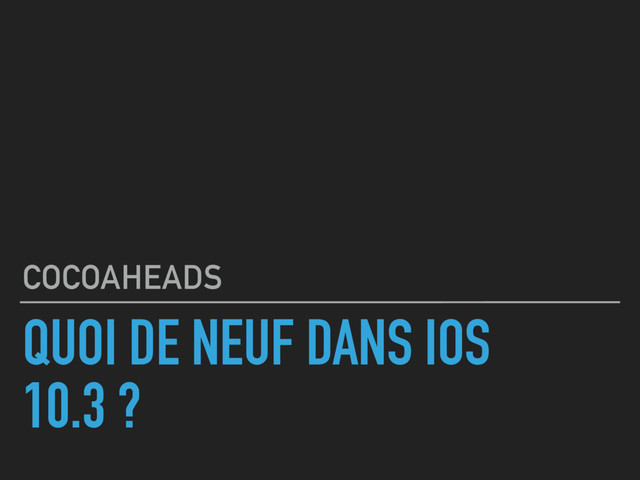 Icons: what can you do and how it works ? https://goo.gl/10pHaB ▸ WWDC16: Introducing Apple File System - https://goo.gl/ CBVwyA ▸ Daring Fireball: Additional Details on the New App Store Review Features - https://goo.gl/uBvvLB ▸ Aadam Leventhal APFS in Detail - https://goo.gl/LfGUpK ▸ Youtube: iOS 10.3 - The importance of APFS for boot speed - https://goo.gl/gOw9Hq