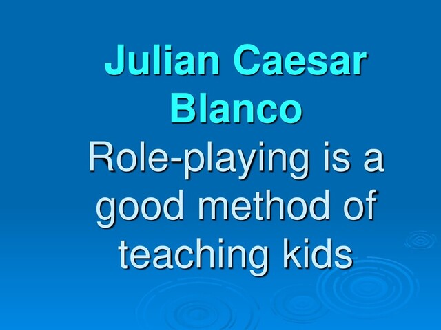 Julian Caesar Blanco prefers to share why he believes roleplaying along with your kids will be a good thanks to creating quality time and show your kids that actions have consequences.