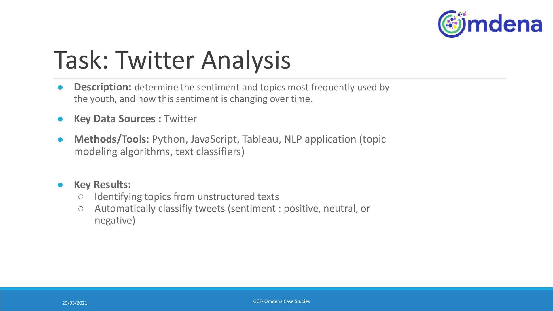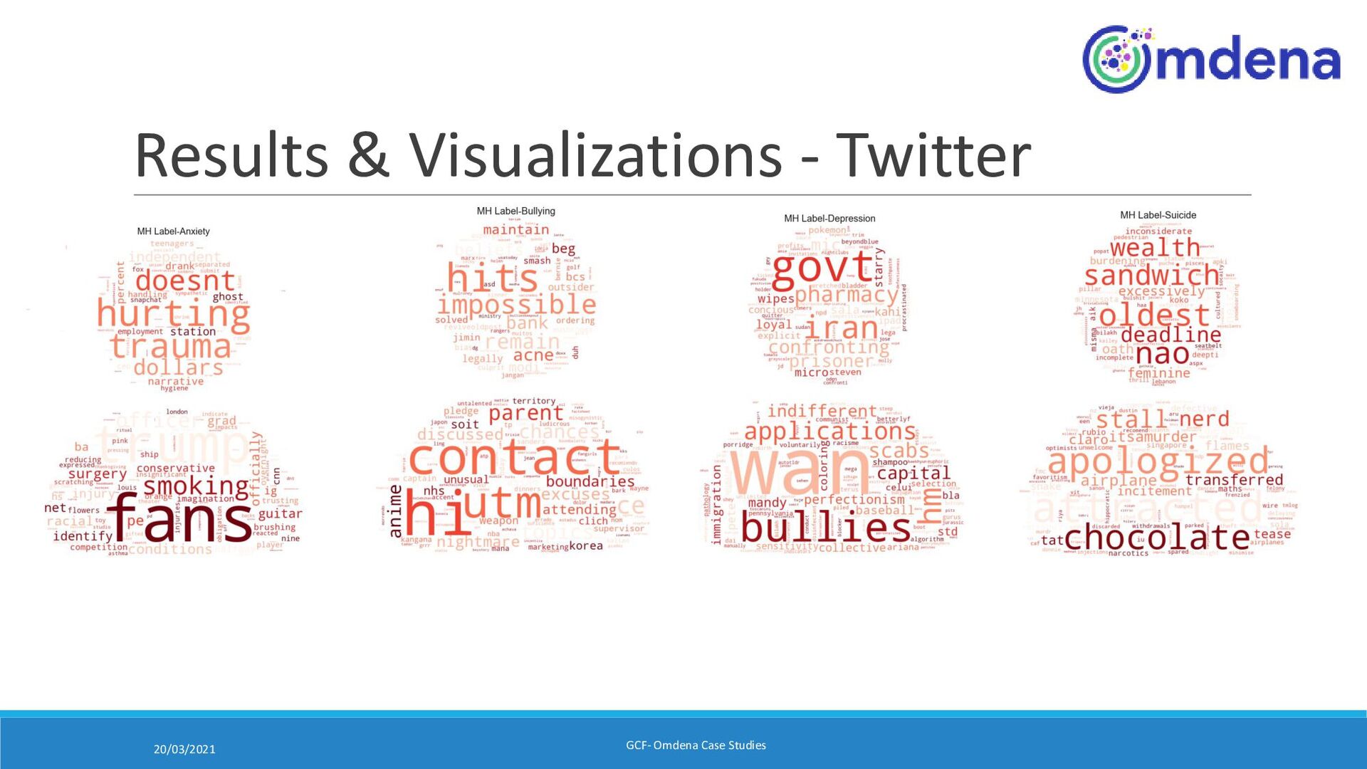 Anjali/Erum • Description: :To get insight on the trends of conversation(chat) and Extraction of Keyword , polarizing sentiments and finding out Chat patterns • Key Data Sources : Social media(Instagram and twitter) and chat forums(Psych Forum,Netmums Forum, CyberSmile Forum and Reachout) • Methods/Tools: Pandas, NumPy, Matplotlib, NLTK, Spacy, Scikit-Learn, Text blob • Key Results: ◦ Chat Pattern ◦ Sentiment analysis ◦ Keywords extraction