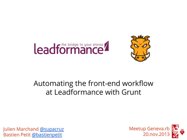 @supacruz and @bastienpetit will detail how they use Grunt in a high expectations and scalability context (big brands, tens of thousands of web pages).