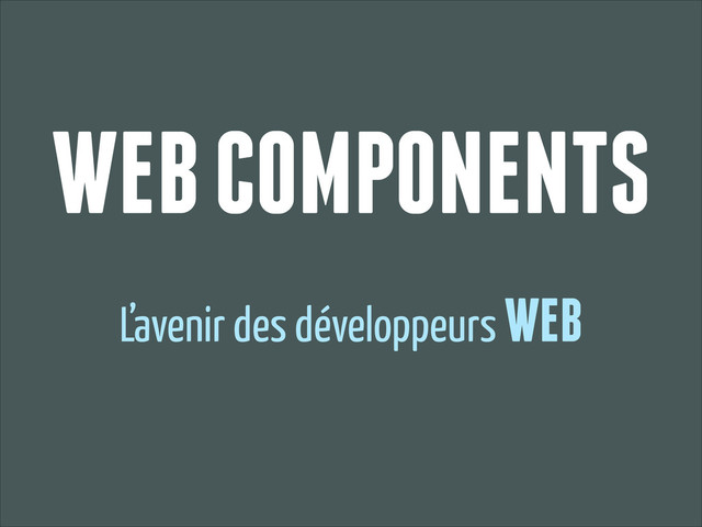 Dans cette présentation, nous prendrons de l’avance ! Nous aborderons les concepts fondamentaux des Web Components : ShadowDOM, Mutation Observers, custom elements, Model-Driven-View, Object.observe()... mais aussi comment les utiliser dès aujourd'hui avec des frameworks tels que AngularJS ou Polymer