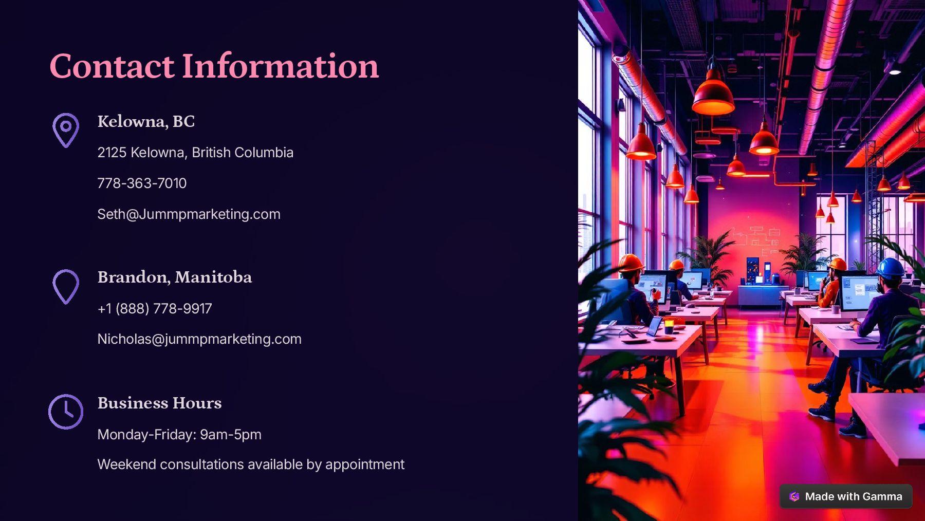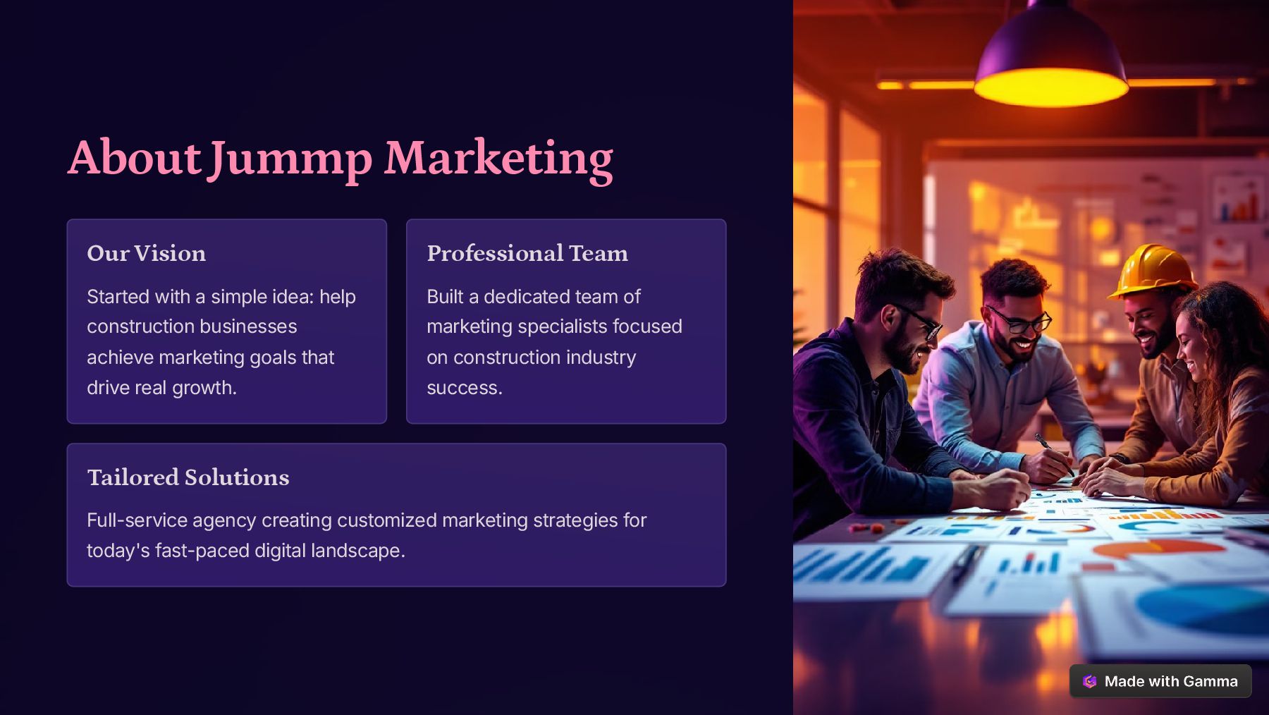 Jummp Marketing is a digital marketing agency committed to helping businesses achieve their marketing goals in a meaningful way. Specializing in local business marketing, we offer tailored solutions ranging from website development to digital advertising, ensuring impactful results that exceed expectations. Our expert team combines strategy, creativity, and innovation to enhance online visibility and drive success. With Jummp Marketing SEO Service, optimize search rankings, boost engagement, and connect businesses with ideal audience. Whether you're looking to build a strong digital presence or maximize conversions, we deliver customized strategies that make a real difference.