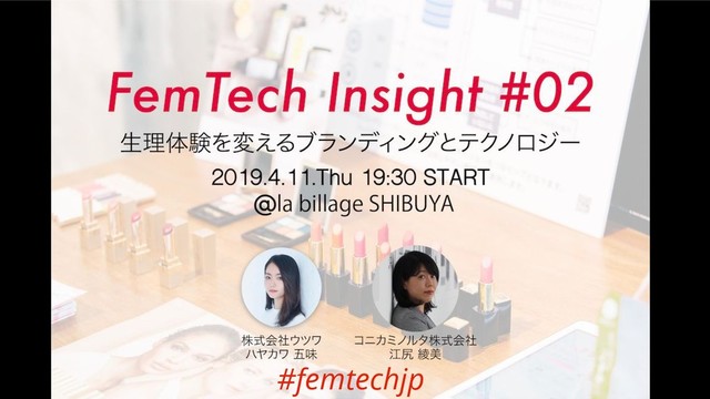 2019年4月11日に開催したイベント「FemTech Insight #02 〜生理体験を変えるブランディングとテクノロジー」のプレゼン資料です。